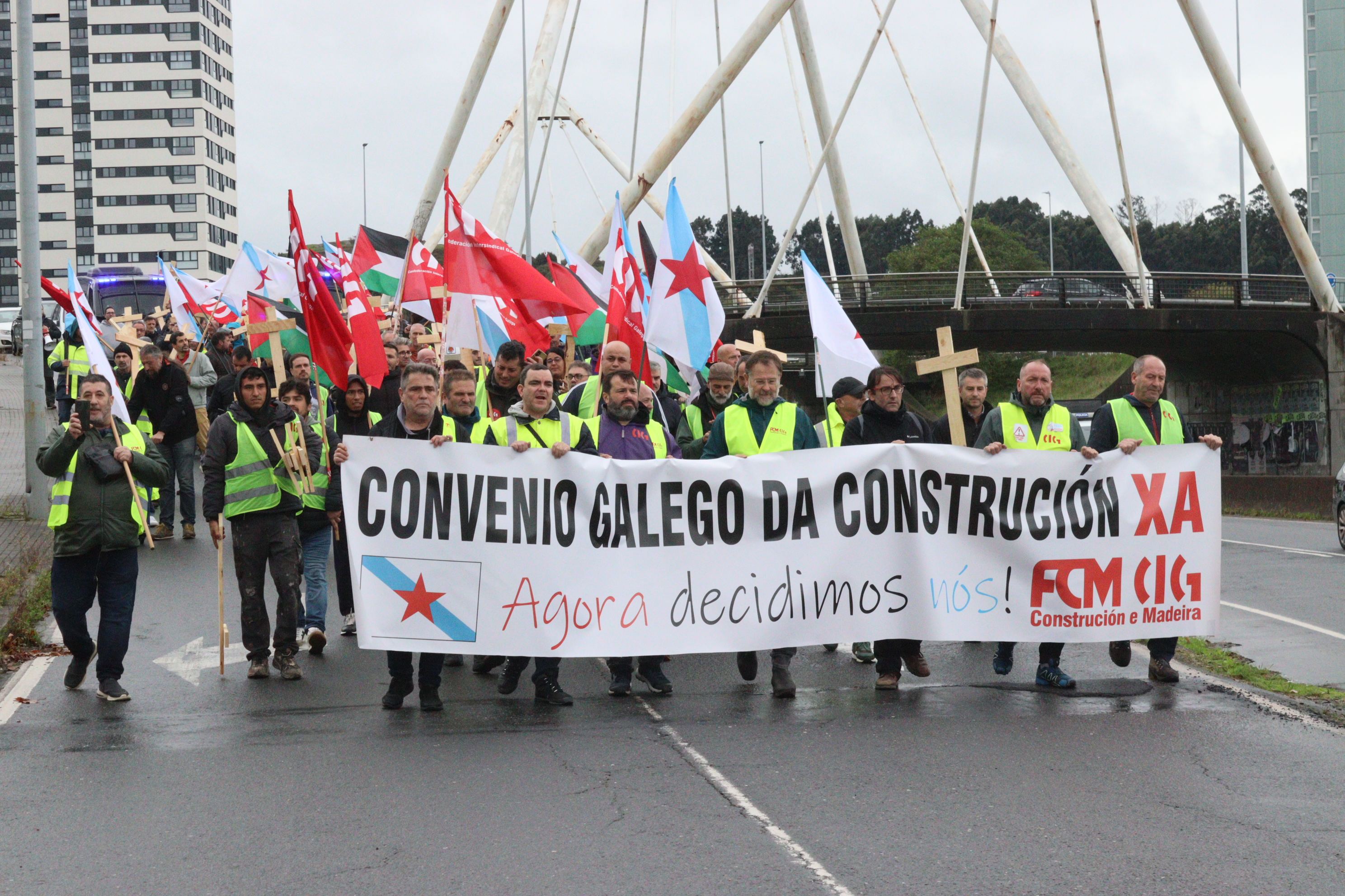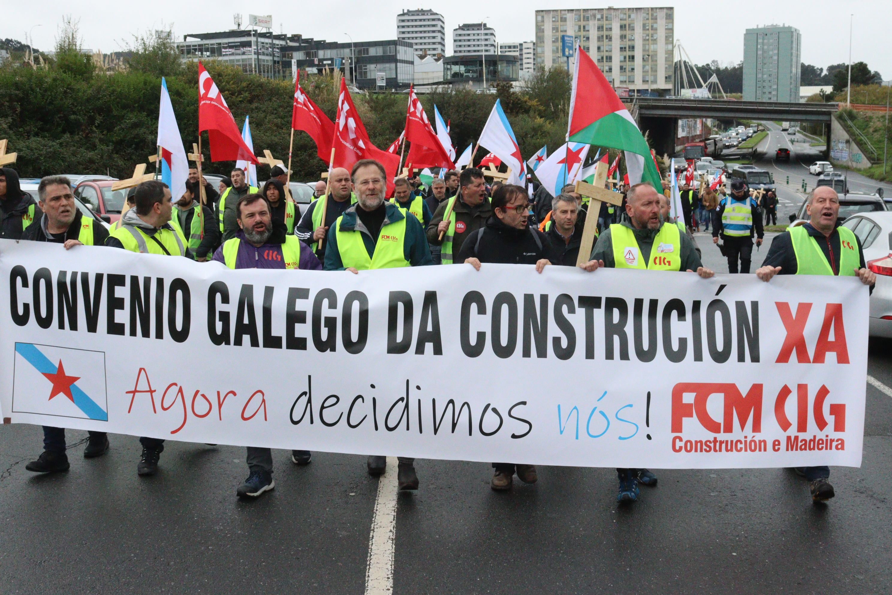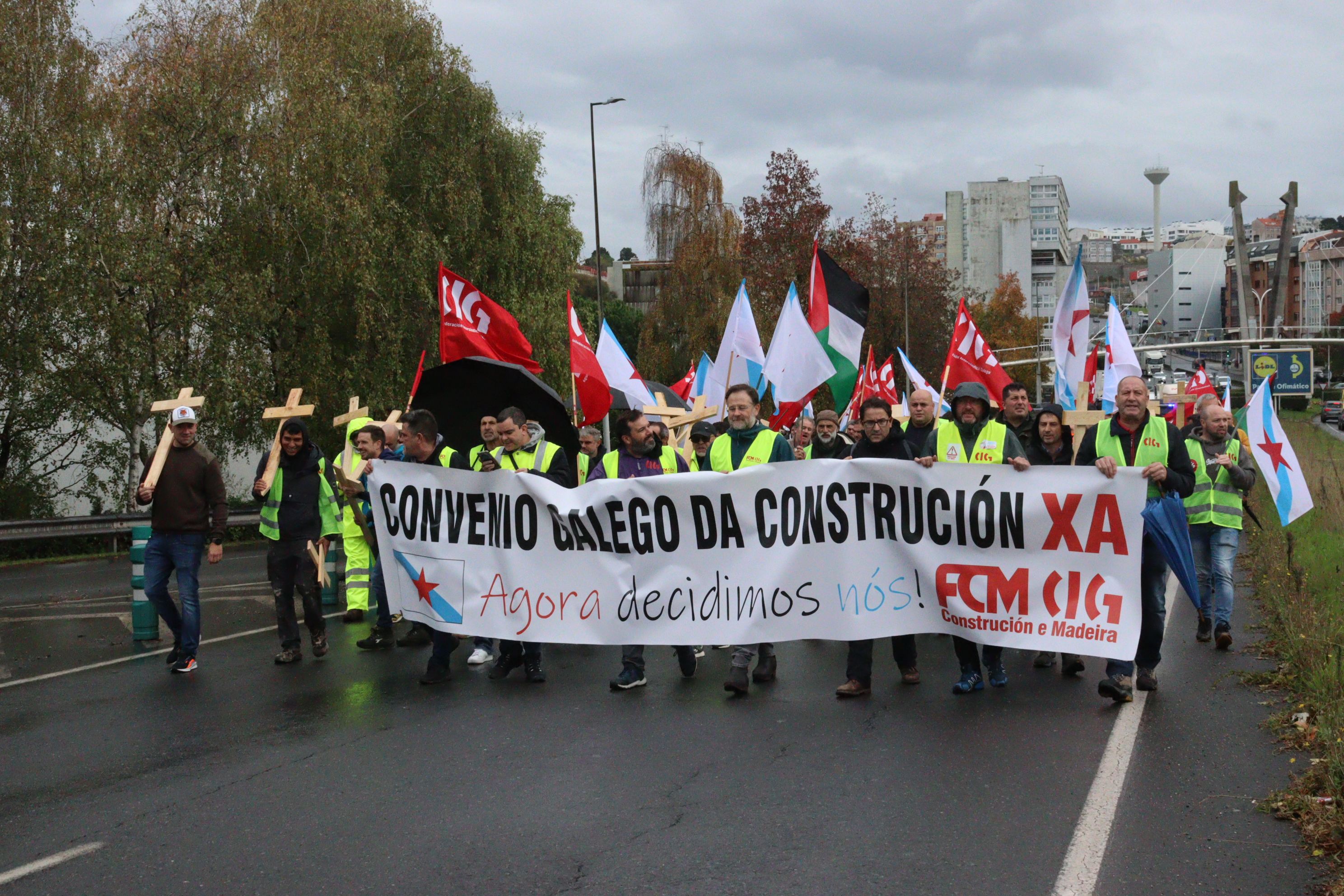 O persoal do sector galego da construción amosa o seu músculo e paraliza todas as grandes obras nunha folga histórica