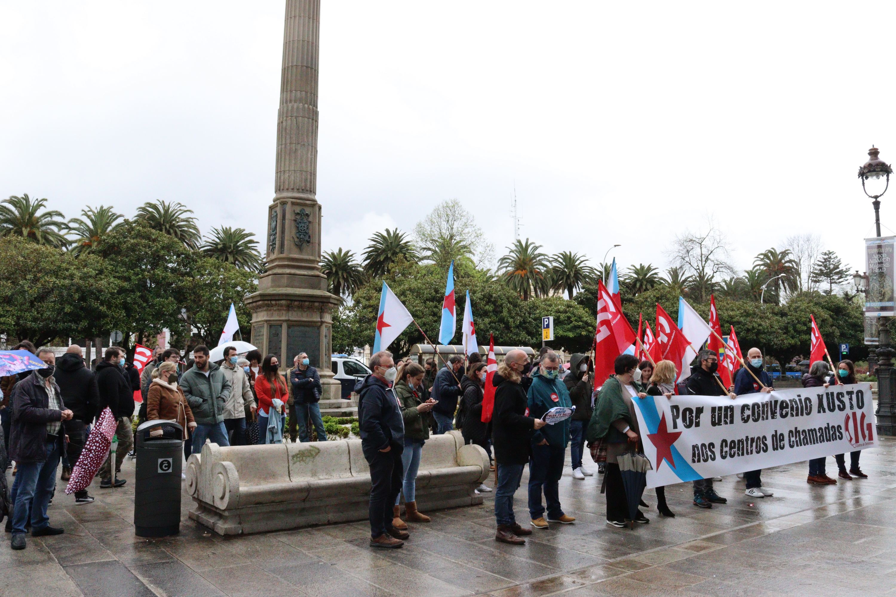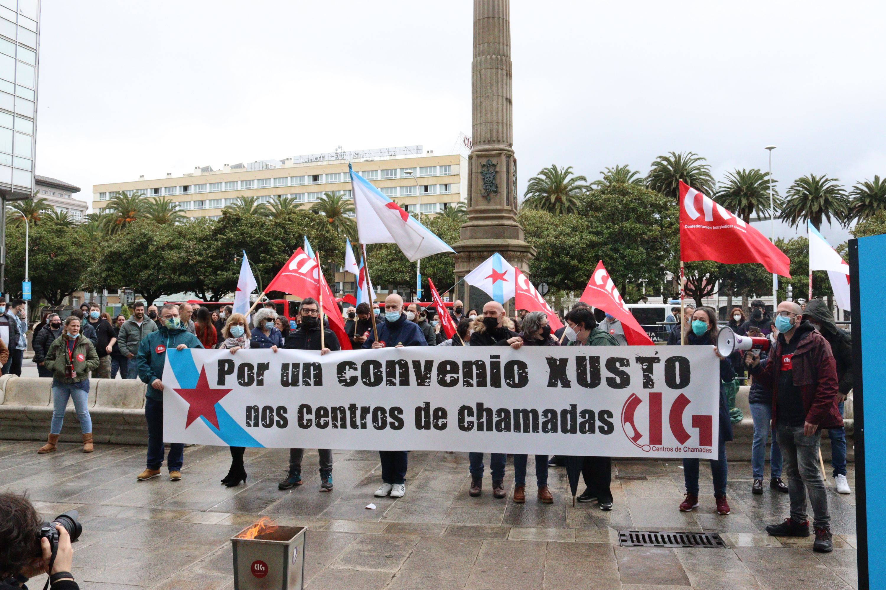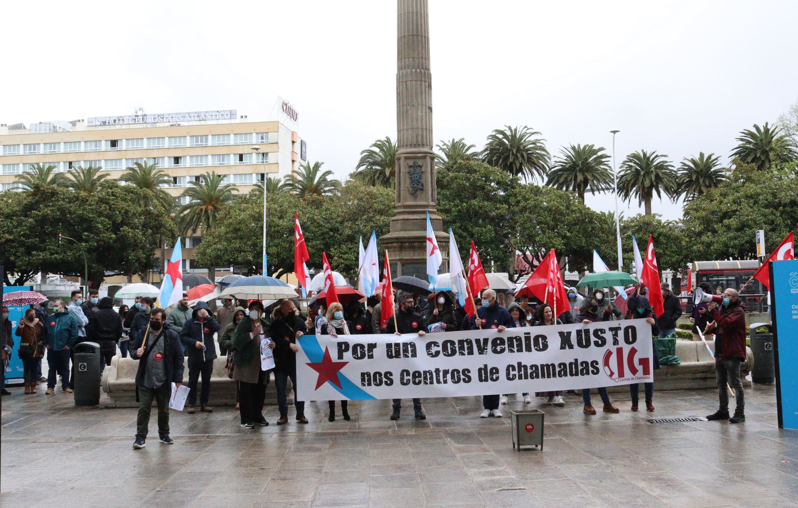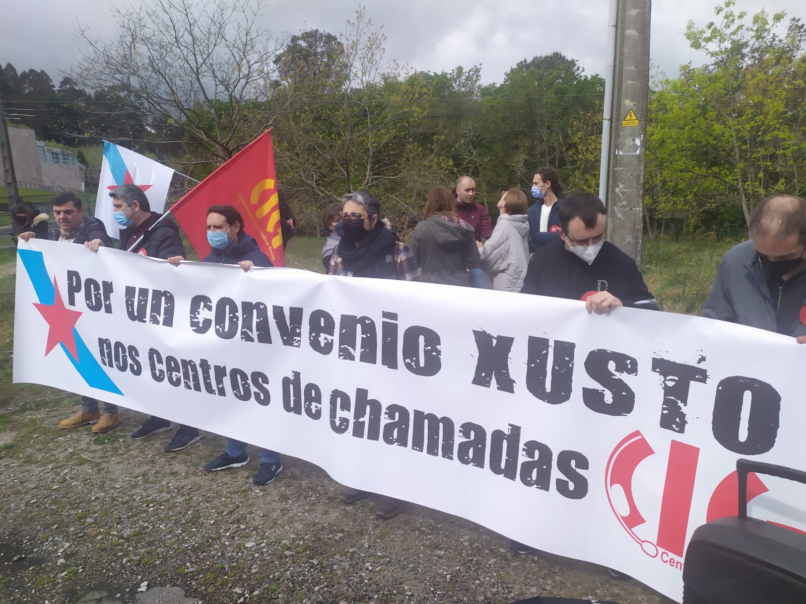 Traballadoras e traballadores dos centros de chamadas de Galiza están secundando este mércores unha xornada de folga, convocada pola CIG, para esixir un convenio colectivo xusto, que dignifique as condicións laborais e salariais do sector. Con motivo do paro, realizáronse concentracións en Vigo, A Coruña, A Estrada e Sarria nas que se denunciaron as propostas de precariedade formuladas pola da patronal que, tras dous anos de negociación, non só se nega a aplicar unha suba que garanta a recuperación do poder adquisitivo dos salarios, senón que incluso pretende recortar dereitos xa consolidados.