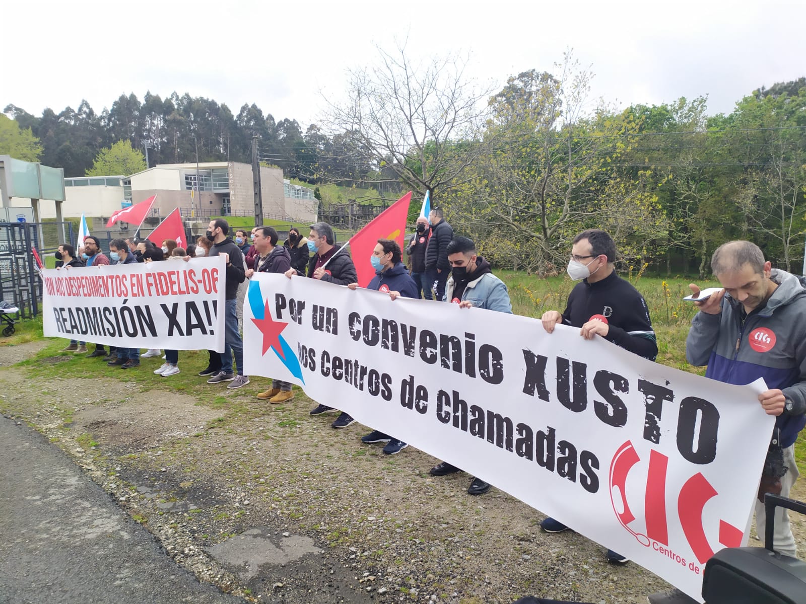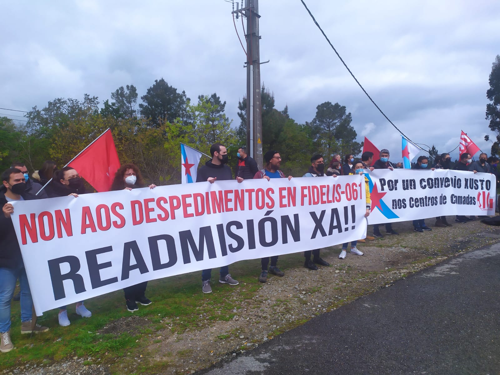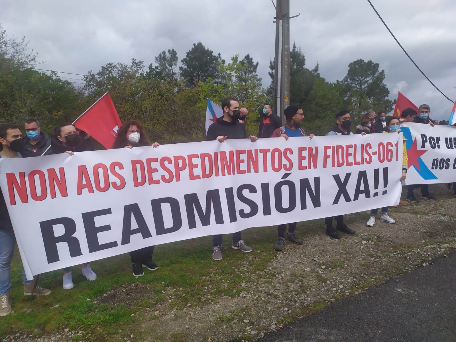 Na concentración realizada diante do CIAG-061, na Estrada, aproveitouse tamén para demandar a readmisión dos traballadores despedidos por Fidelis (concesionaria do centro de chamadas do servizo de urxencias sanitarias do 061 en Galiza). O comité deste centro de traballo entende que os despedimentos foron feitos en fraude de lei, xa que aínda que a empresa sostén que se trata de dúas finalizacións de contrato o certo é que os afectados teñen unha media de sete anos de antigüidade na compañía.