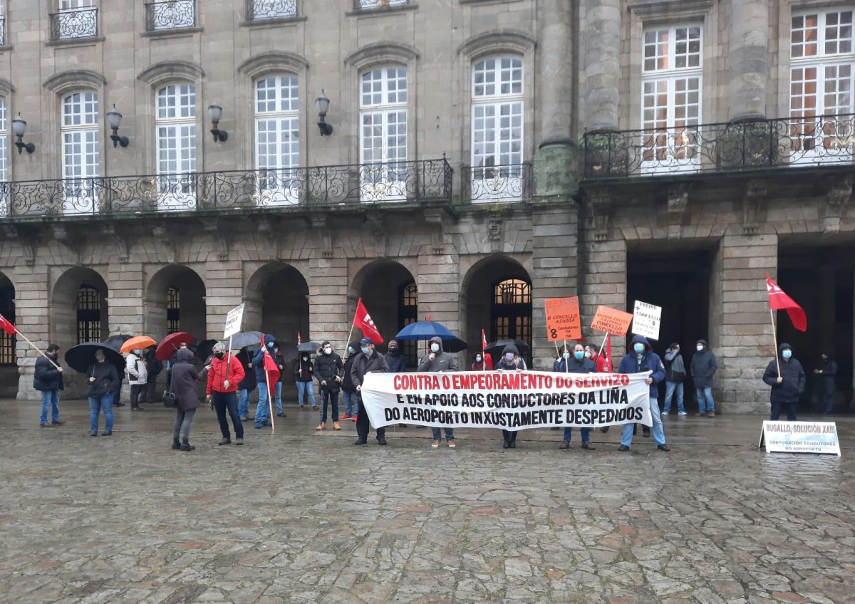 O persoal non subrogado da liña do aeroporto de Santiago reclama recuperar os seus postos de traballo