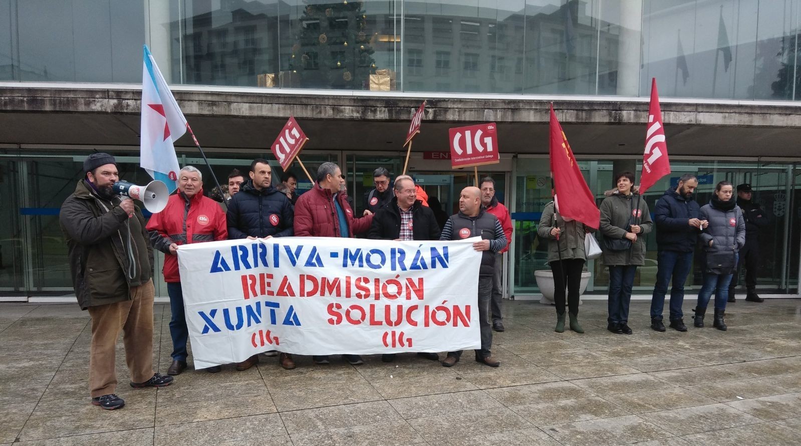A concentración retómase tras da suspensión, o pasado luns, dos primeiros xuízos por despedimento, ao requiriren as empresas achegar maior documentación e demandar da Xunta información que consideran necesaria. Unha manobra que os traballadores entenden só busca alongar a resolución xudicial do conflito.