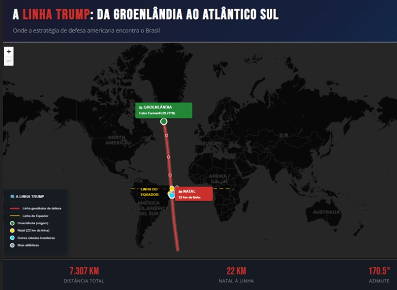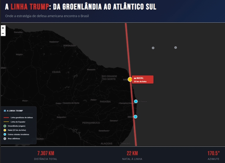 Donald Trump quer a Groenlândia porque ela é estratégica para a defesa do hemisfério norte. Mas toda linha de defesa tem dois pontos. Se prolongarmos a lógica trumpista para o sul, se traçarmos a linha geodésica que conecta a âncora ártica ao Atlântico meridional, chegamos a uma conclusão que deveria preocupar Brasília: o ponto sul da linha de defesa de Donald Trump é o Nordeste brasileiro.