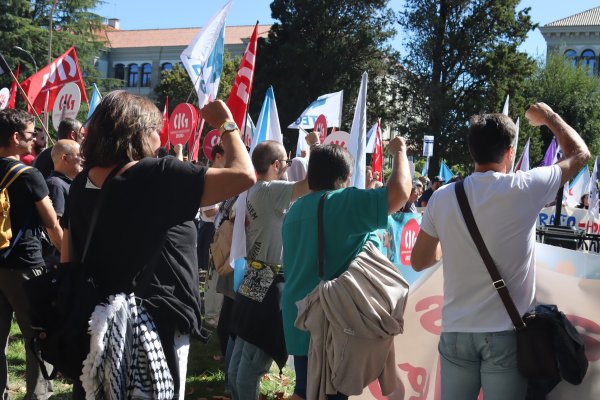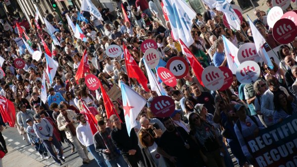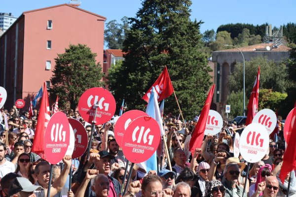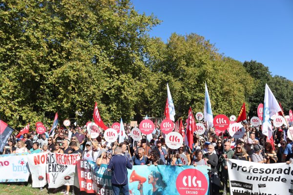 Profesorado, alumnado e ANPAS tomaron esta mañá as rúas de Compostela, coincidindo coa xornada de folga convocada para denunciar a política de recortes e propaganda do PP na Xunta de Galiza e para reclamar a recuperación de dereitos. Unha folga na que a CIG-Ensino sitúa por riba do 60% a porcentaxe de asistencia, cun incremento moi importante en infantil e primaria a respecto dos paros de 2023, “o que demostra a fartura e o malestar do profesorado coas políticas da Consellaría”.