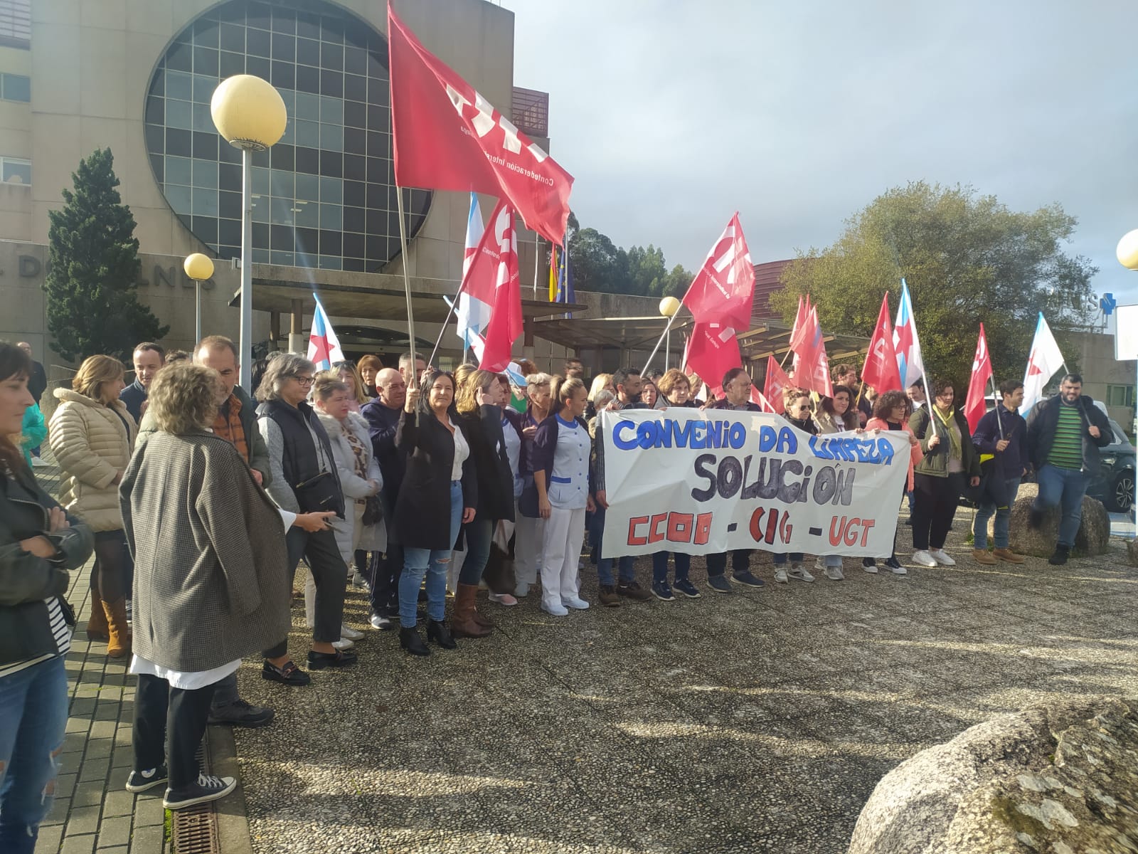 En consecuencia, decidiu levar a cabo estas concentracións “non só para defender o convenio, senón tamén para amosarlle o seu apoio ás compañeiras/as de Lugo que se atopan en folga indefinida dende o pasado 16 de outubro por culpa da mesma patronal, que non quere incrementar uns salarios que están por debaixo do SMI”.