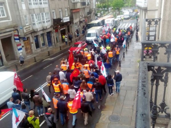 A manifestación rematou diante da sede da Confederación de Empresarios, na zona vella compostelá, en demanda de que a patronal sente a negociar unhas condicións xustas no conxunto das empresas, para todas e todos os traballadores.