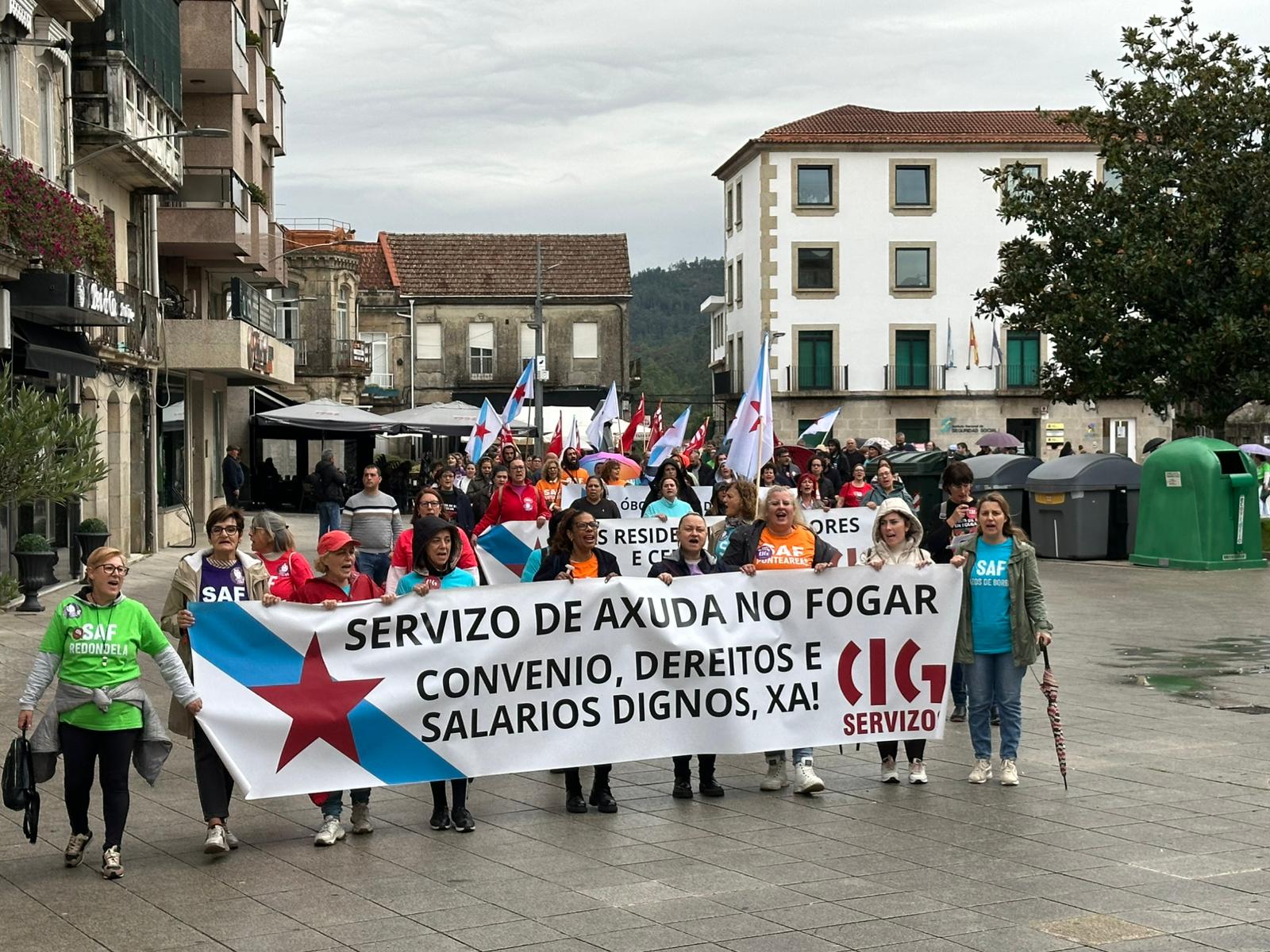 A sétima xornada de folga convocada pola CIG dende setembro no sector de coidados (residencias de maiores e centros de día privados e Servizos de Axuda no Fogar) está a ter de novo un importante seguimento, como así o evidencian as mobilizacións que tiveron lugar ao mediodía en nove localidades do país. Por outra banda, unha representación da central participou hoxe na xuntanza da mesa de traballo encargada de elaborar un protocolo de protección para o persoal dos SAF, na que se evidenciou que o presidente da Xunta intentou “vender” a existencia dun protocolo “que en realidade é só un esquema de traballo”.