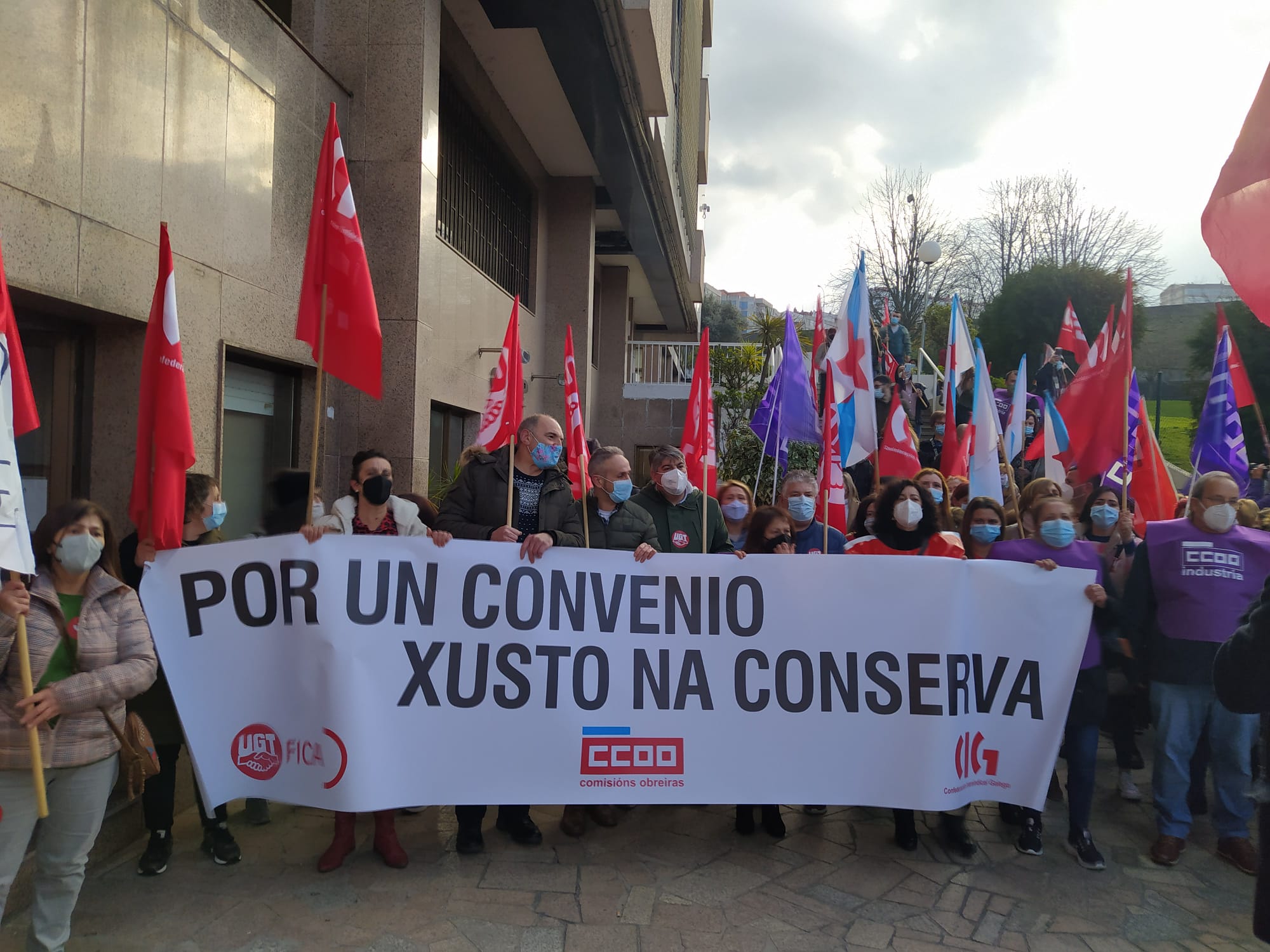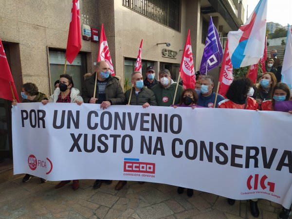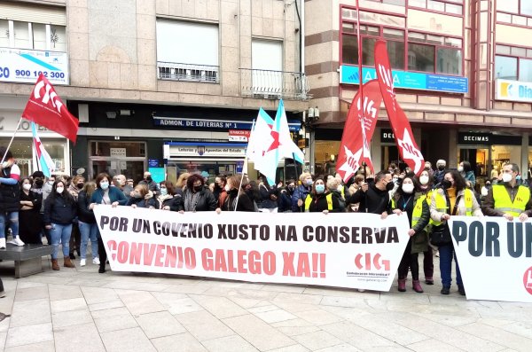 O segundo día de folga por un convenio digno nas conservas rexistra un seguimento aínda maior que na primeira xornada