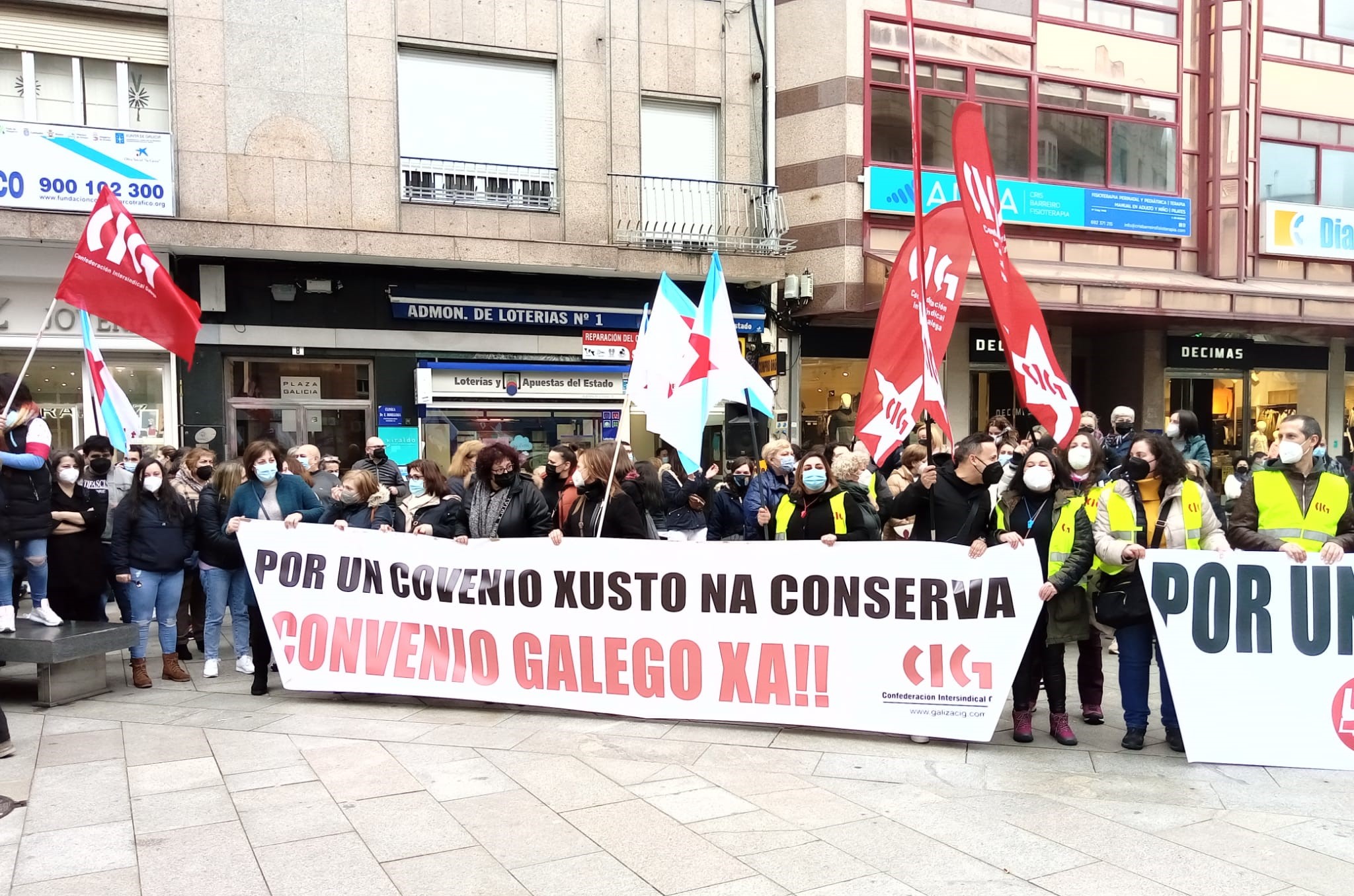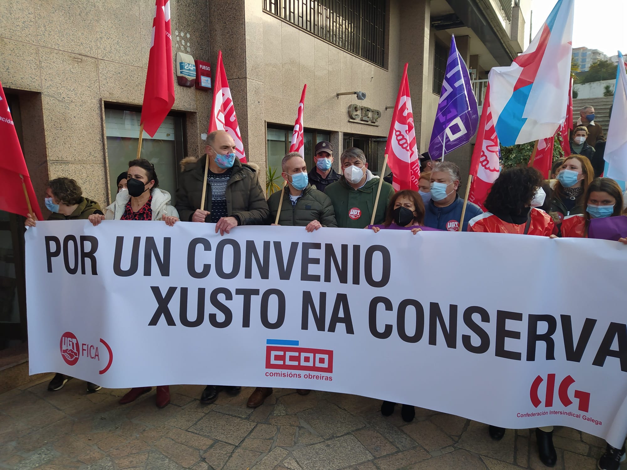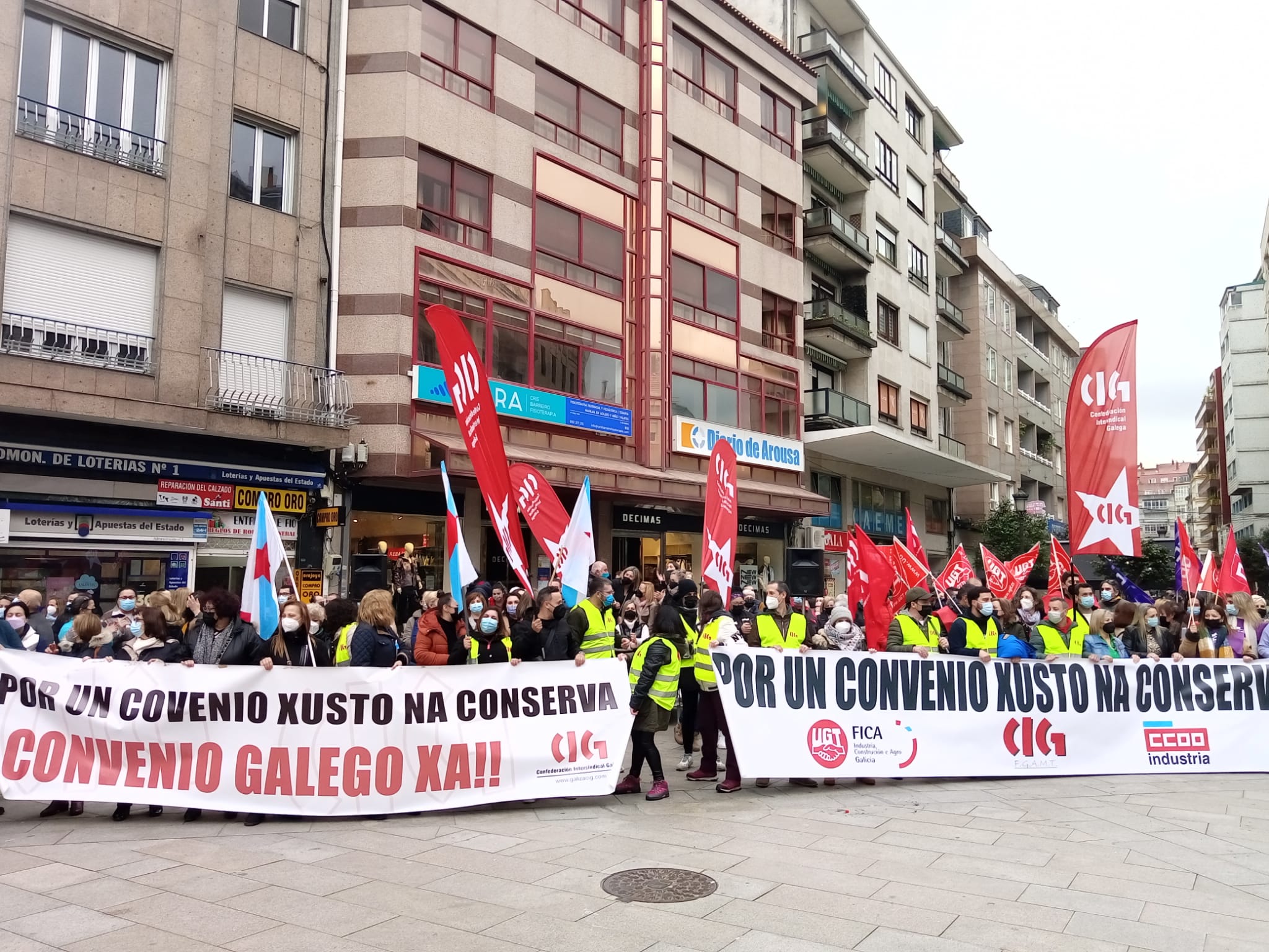 O persoal do sector das conservas de peixe deu hoxe unha novo exemplo da súa capacidade de loita e secundou de forma masiva a segunda xornada de folga convocada para reclamar un convenio colectivo digno. Ademais, coincidindo cos paros de 24 horas centos de traballadoras/es volveron participar nas masivas mobilizacións que tiveron lugar en Vigo, Vilagarcía e Boiro.