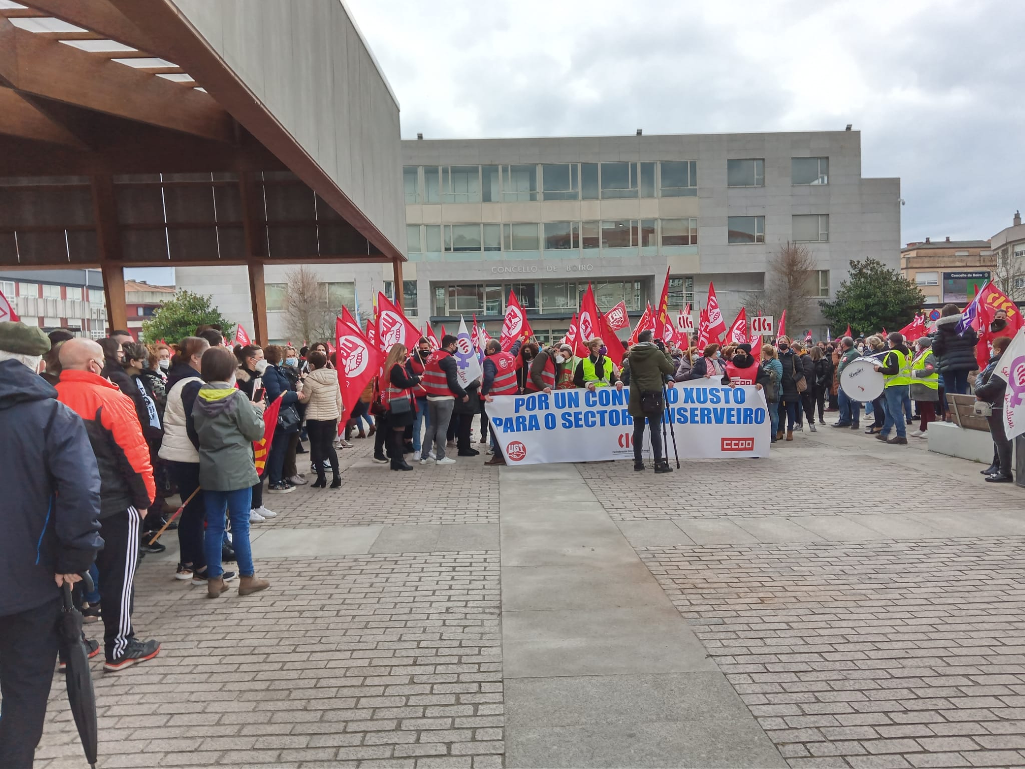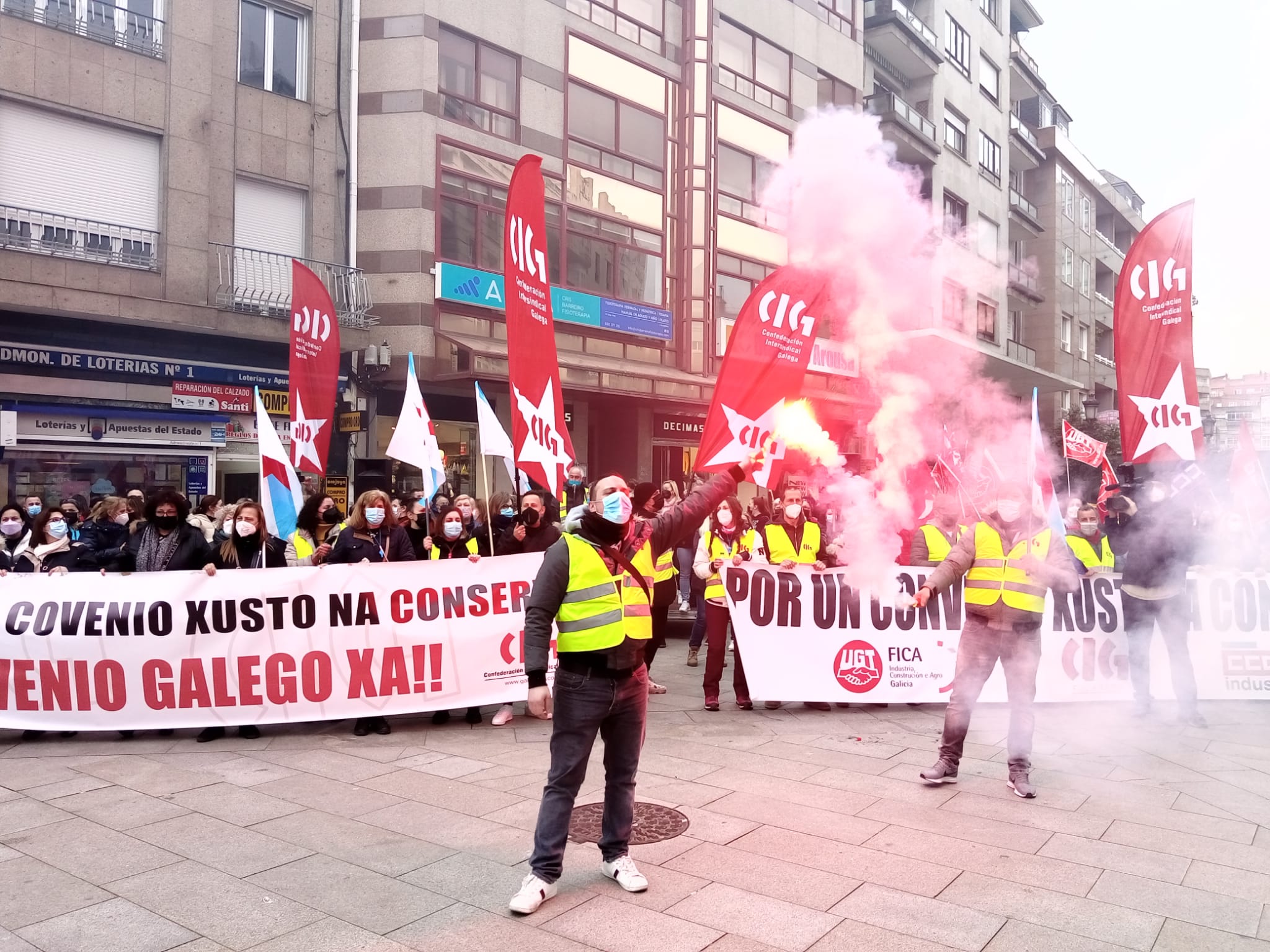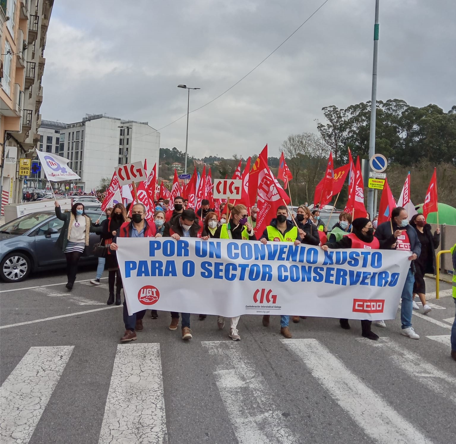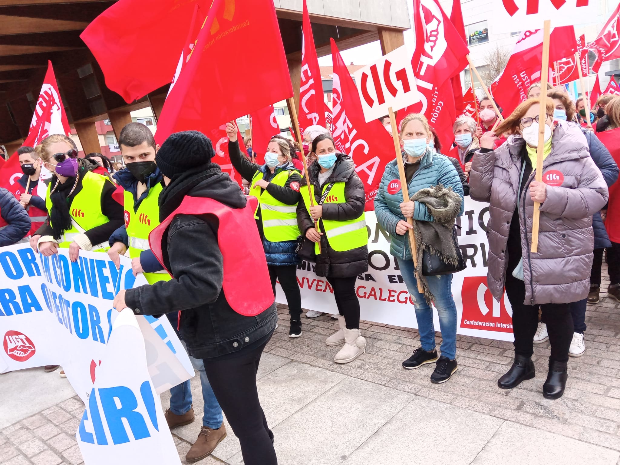 O seguimento do paro estivo incluso por riba do 90% rexistrado entre o persoal de fabricación o pasado 21 de xaneiro, a primeira xornada de folga das tres convocadas polos sindicatos maioritarios no sector, a CIG, CCOO e UGT. Tamén foron máis numerosas as protestas que se celebraron en Vigo -cunha manifestación entre o edificio da Xunta e a sede da Confederación de Empresarios de Pontevedra-, Vilagarcía -cunha concentración na praza de Galiza- e en Boiro -cunha manifestación dende o Concello.