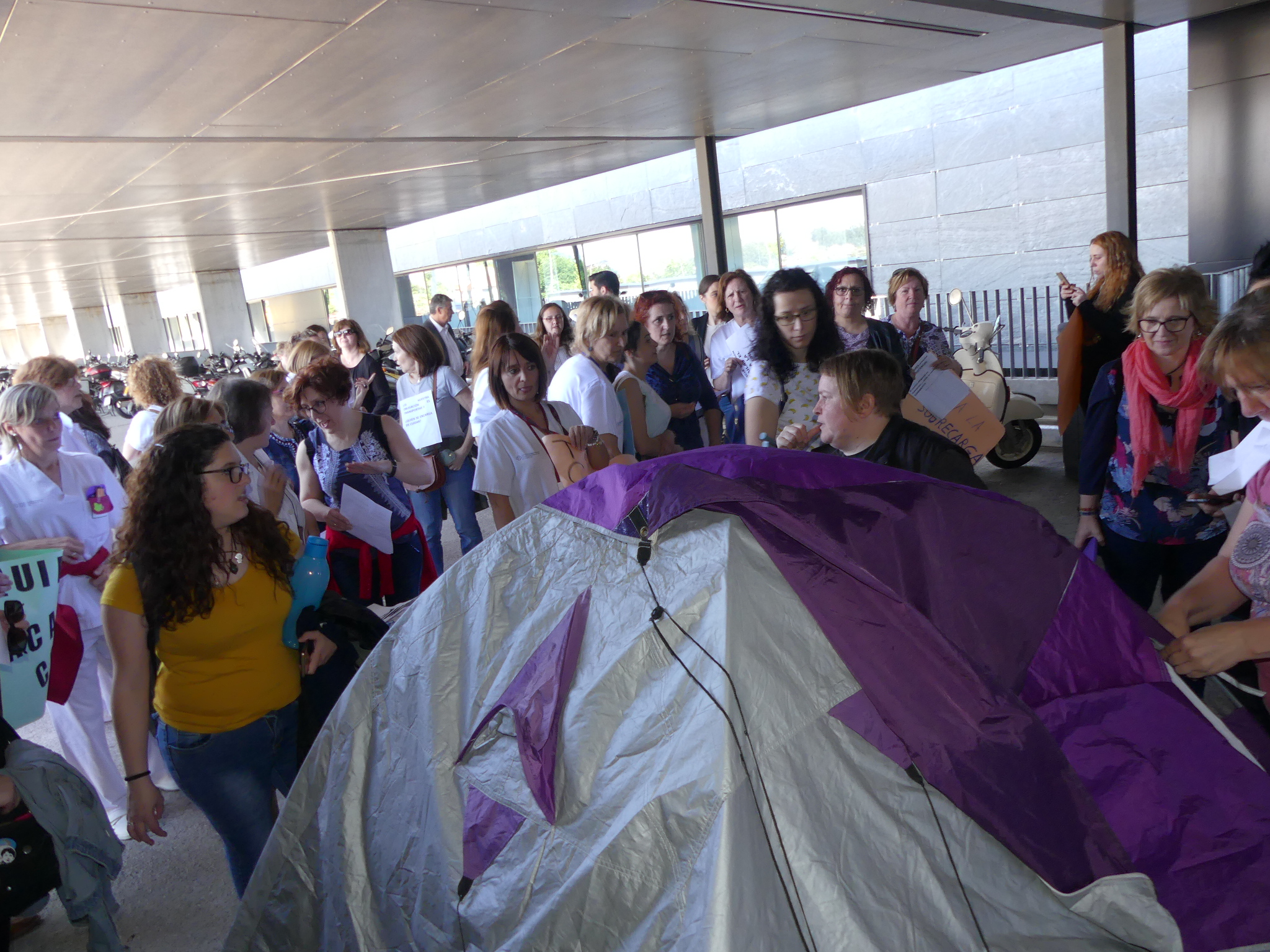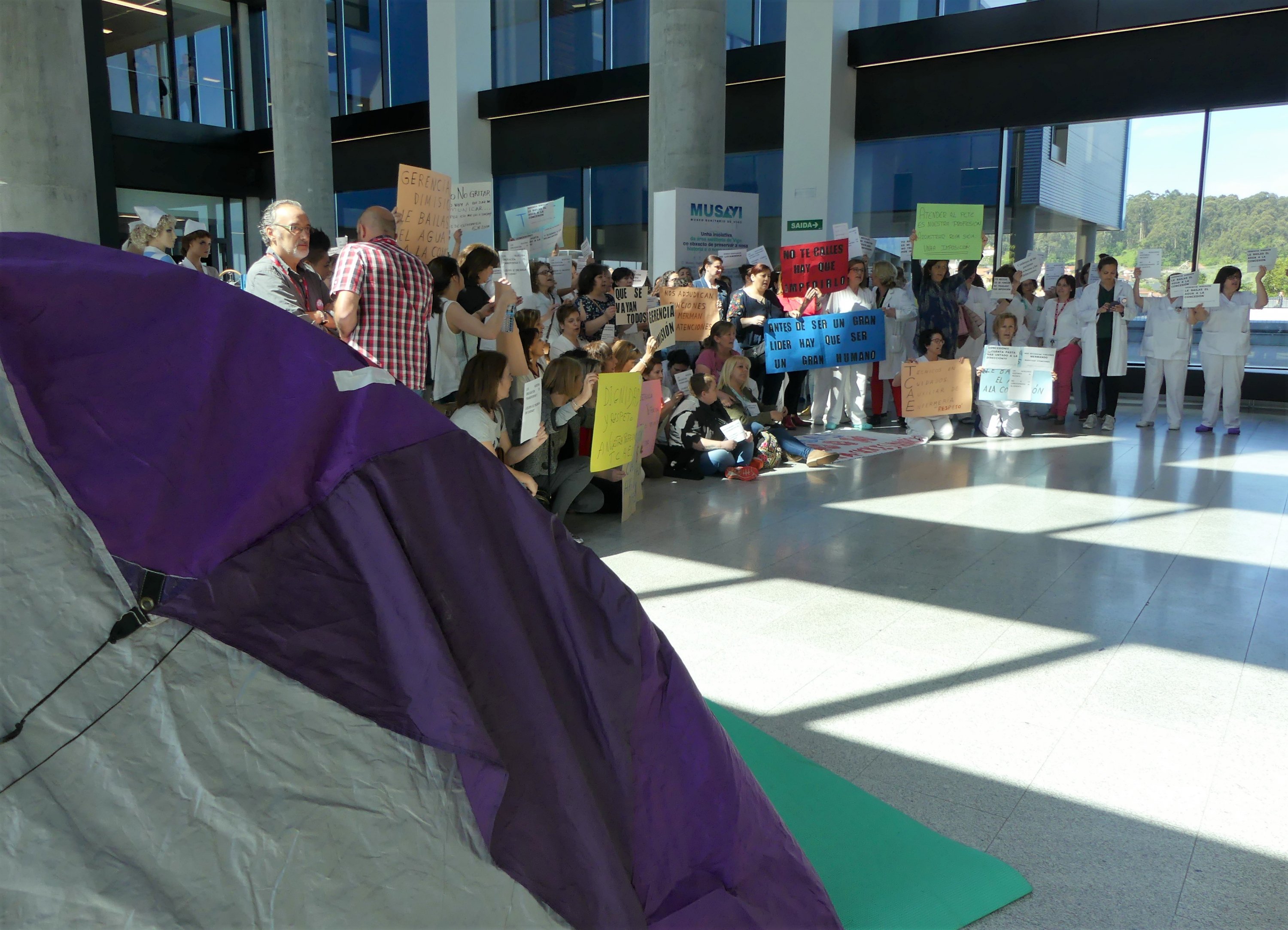 A continuación aproveitaron para levar a cabo unha marcha silenciosa arredor do hospital, a cuxo interior accederon de novo nalgunha ocasión para visibilizar o conflito entre os pacientes e usuarios/as.