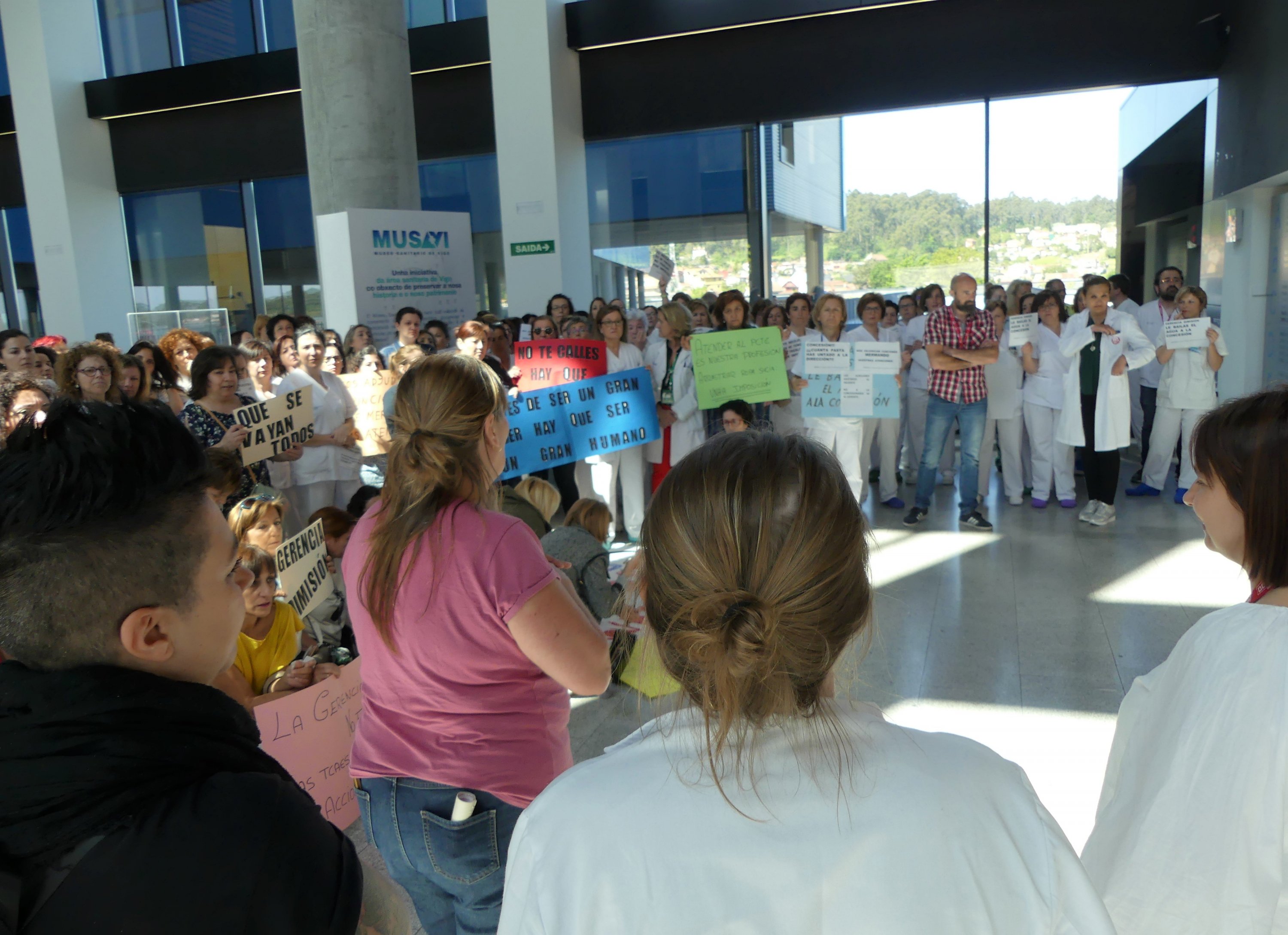 Con todo, decidiron regresar ao interior do vestíbulo -onde aínda permanecen a pesar das presións para que marchen- despois de manter unha xuntanza coa Xerencia que rematou sen acordo. Segundo denuncian as afectadas/os, o seu responsábel utilizou un ton moi agresivo durante a reunión e intentou enfrontalas/os con outros colectivos profesionais sanitarios. Como consecuencia, solicitarán un encontro co conselleiro para abordar esta problemática xa que non consideran o xerente como un interlocutor válido.