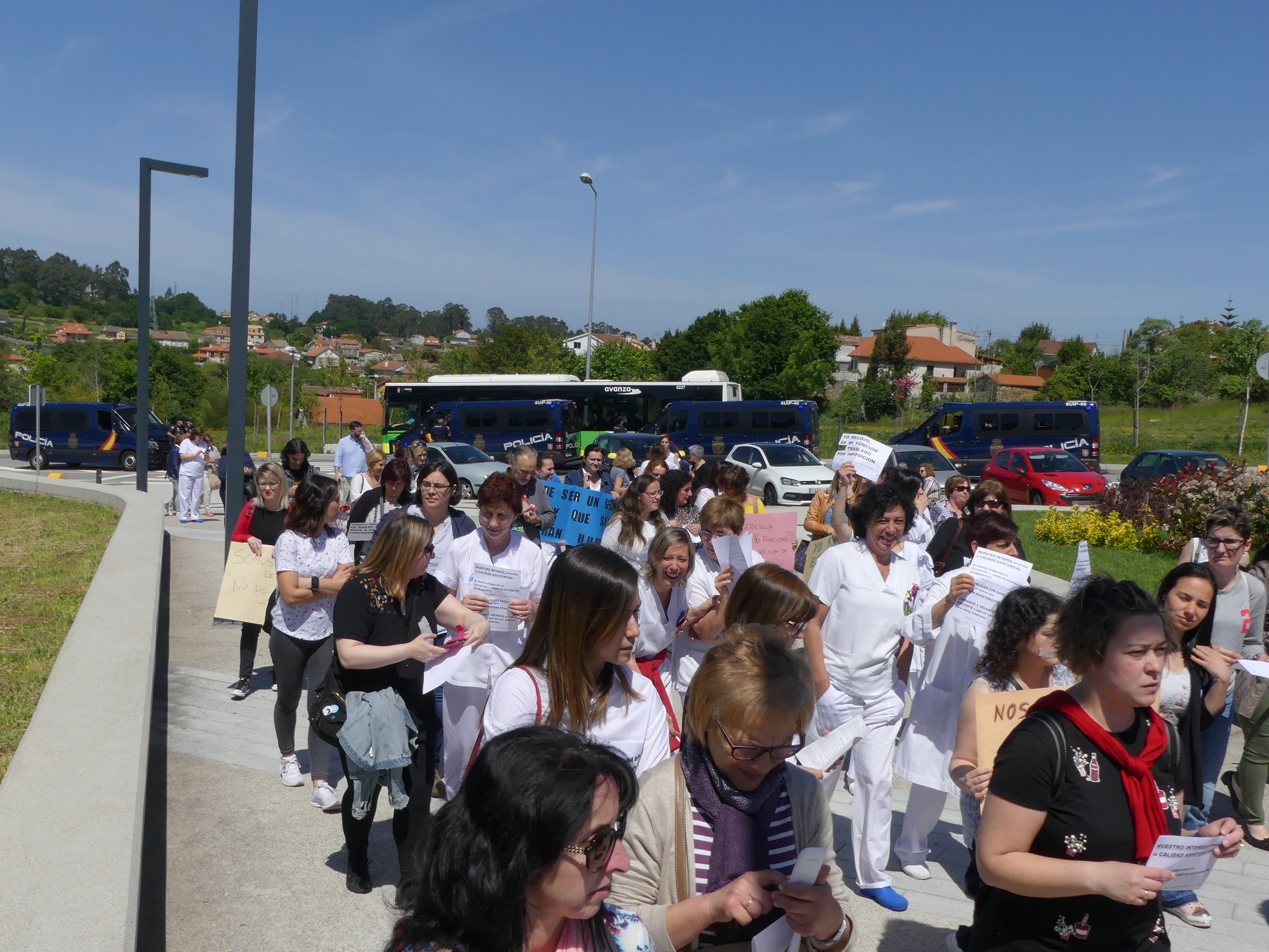 Tanto a comunicación do xerente como o importante dispositivo policial -ao parecer motivado pola folga de ambulancias convocada pola CIG- provocaron a indignación das máis dun cento de empregadas/os presentes na protesta, que recibiron as palabras do responsábel sanitario ao berro de “dimisión” e criticaron a presenza de grileiras e mesmo dun helicóptero.
