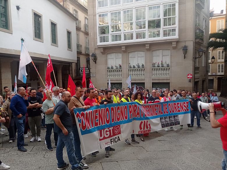 Varios centos de persoas traballadoras do siderometal ourensán percorreron onte pola tarde as rúas da cidade en manifestación para reclamar un convenio colectivo digno cunha suba salarial que compense a perda de poder adquisitivo e unha redución de xornada que permita avanzar cara a conciliación laboral e familiar.