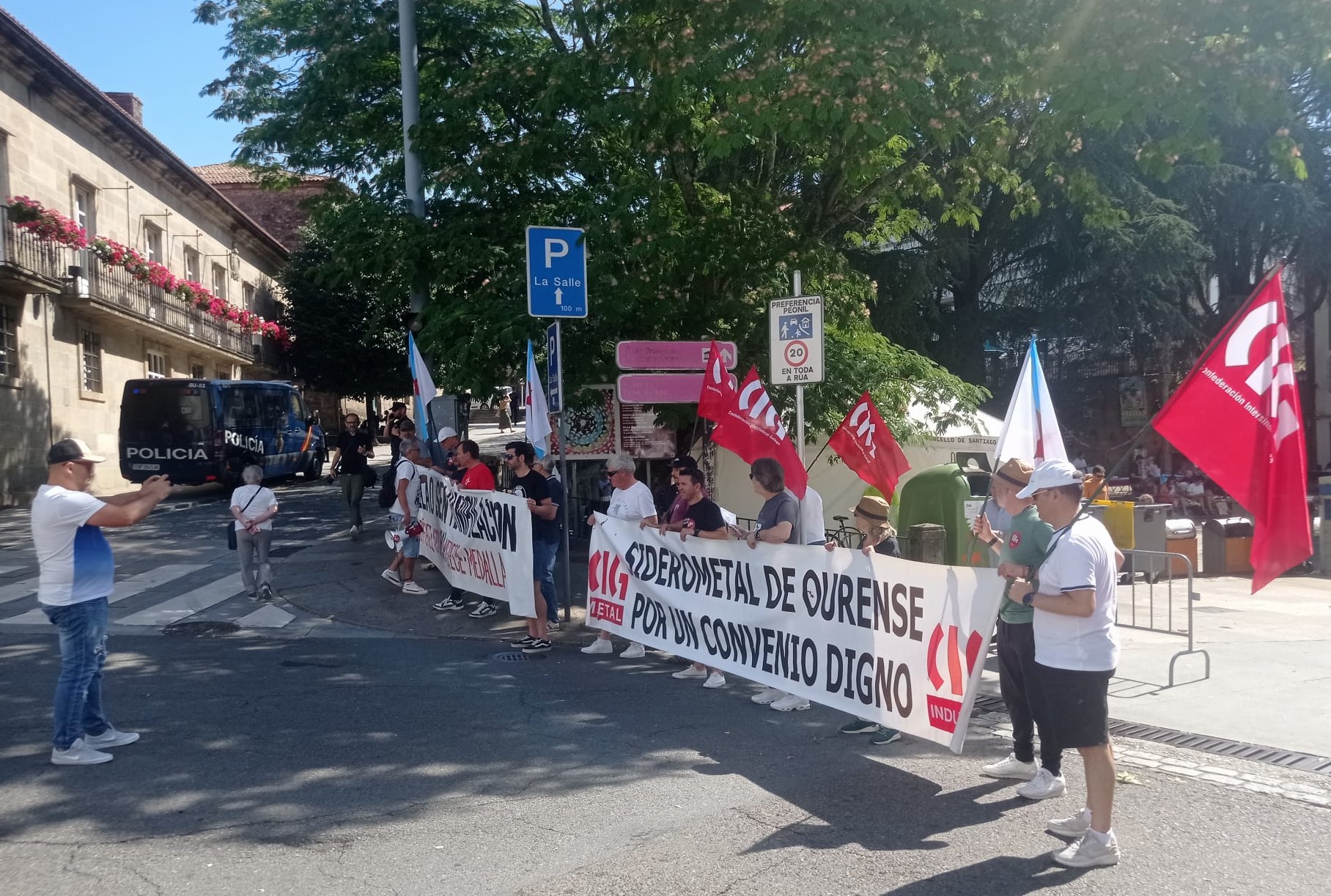 A protesta fai parte da campaña de mobilizacións que a CIG-Industria de Ourense está a desenvolver para reclamar un convenio colectivo provincial digno no siderometal. O secretario comarcal da federación, Indalecio Gómez, agradeceu “o apoio dos compañeiros e compañeiras de Santiago que participaron na concentración”.