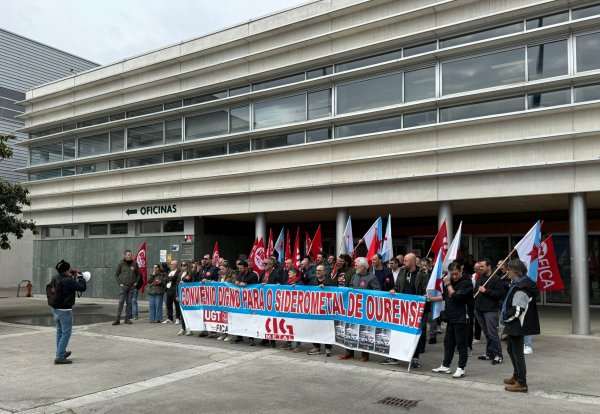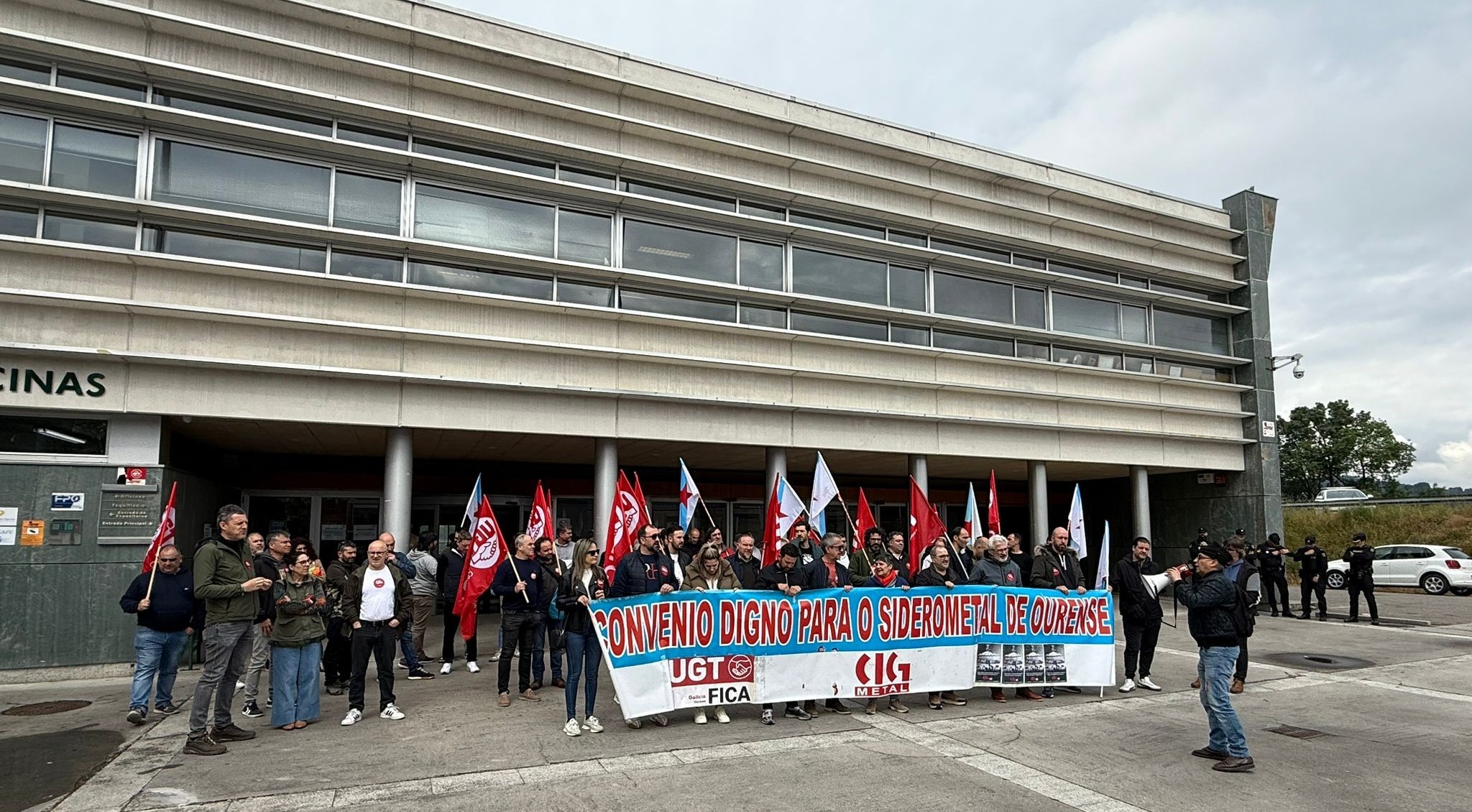 Persoas traballadoras do siderometal ourensán mobilizáronse este venres coincidindo coa inauguración do VII Car Outlet para reclamar un convenio colectivo provincial digno, xa que a patronal insiste nunha proposta insuficiente que non garante o poder adquisitivo nin contempla reducións de xornada. Diante do bloqueo das negociacións a CIG e a UGT anunciaron unha campaña de protestas que comezou o venres pasado diante do recinto feiral Expourense e que continuará este martes día 20 cunha manifestación dende a casa sindical ás 20:00 horas.