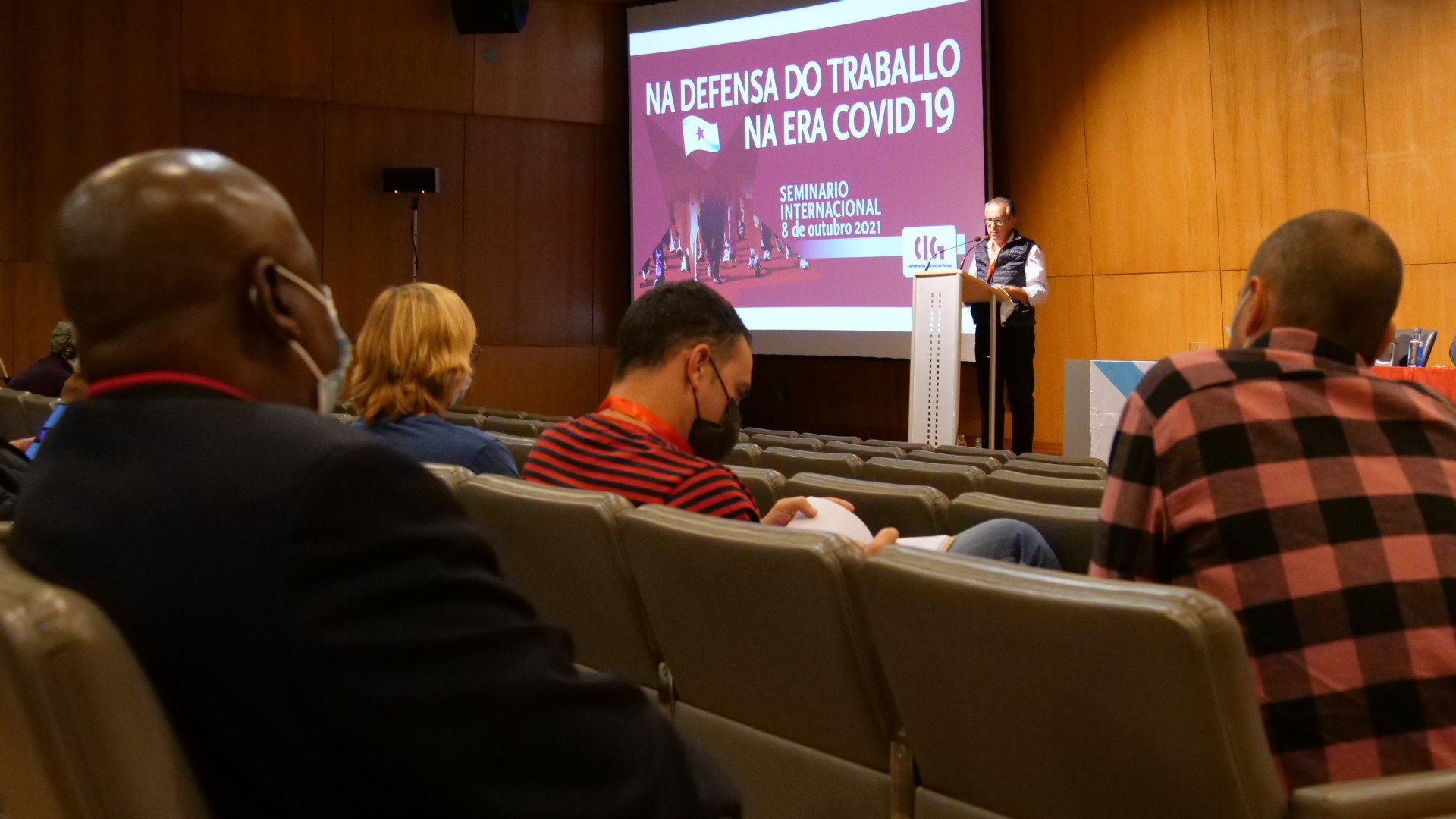 Baixo o título “A defensa do traballo na era covid-19” celebrouse, durante toda a xornada deste venres, un Seminario Internacional organizado pola CIG no que participaron representantes de organizacións sindicais de diferentes países do mundo. Unha convención na que as e os asistentes alertaron dos perigos da globalización, que cualificaron como “insostíbel”, e fixeron un chamamento a combater a ofensiva mundial do capital -reforzada so pretexto da covid- contra o traballo.