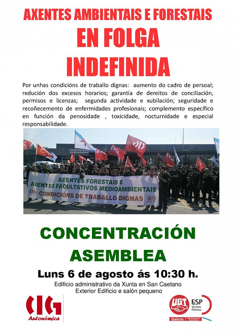 O comité de folga dos axentes forestais e ambientais (CIG e UGT) convoca unha mobilización ás portas de San Caetano este luns día 6 coincidindo coa celebración dunha nova xuntanza entre a representación do persoal e a Dirección Xeral de Función Pública.