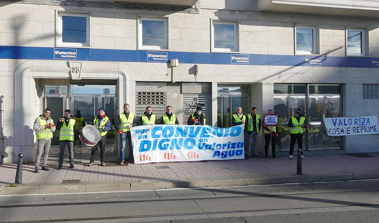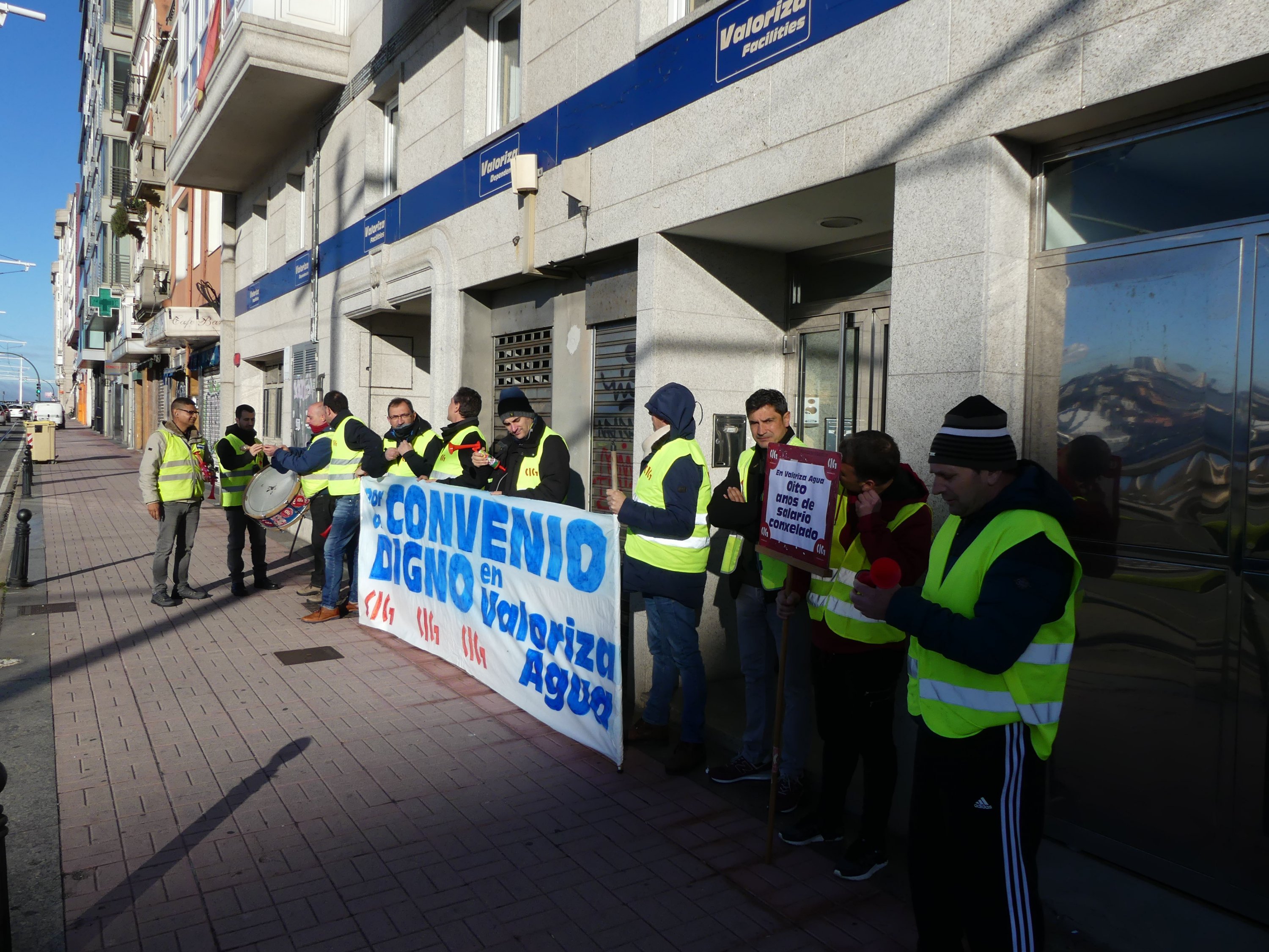 Os traballadores de Valoriza Auga comezan o ano tal e como o remataron: en folga indefinida por un convenio colectivo que lles permita recuperar os dereitos económicos e laborais perdidos nos últimos anos. Este mércores, o persoal volveuse concentrar diante das oficinas de Valoriza na rúa do Matadoiro para reclamarlle á empresa unha proposta "seria" que permita desbloquear o conflito e avanzar na sinatura do novo acordo e, ao tempo, a readmisión dos dous compañeiros eventuais despedidos en plena folga.