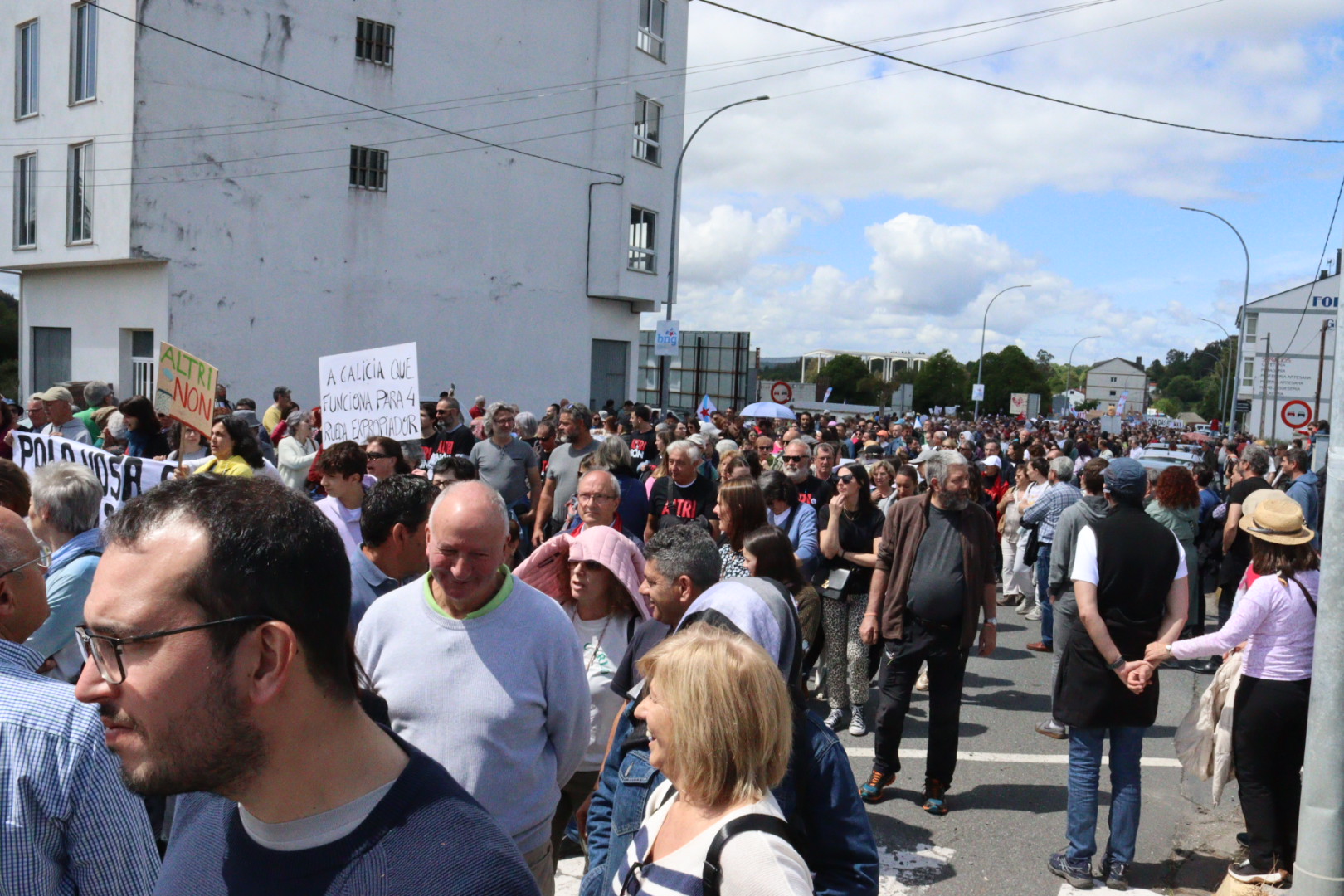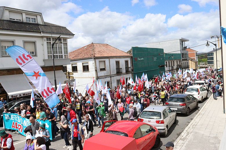 "Estamos diante dun modelo depredador dos nosos recursos naturais, con grave impacto ambiental, social e económico", denunciou o secretario xeral da CIG, Paulo Carril, quen instou a intensificar a mobilización social contra un proxecto que ten recibido o rexeitamento de colectivos e agrupacións dos máis diversos ámbitos, tal e como se puido visibilizar nas distintas faixas que acompañaron a manifestación deste domingo.