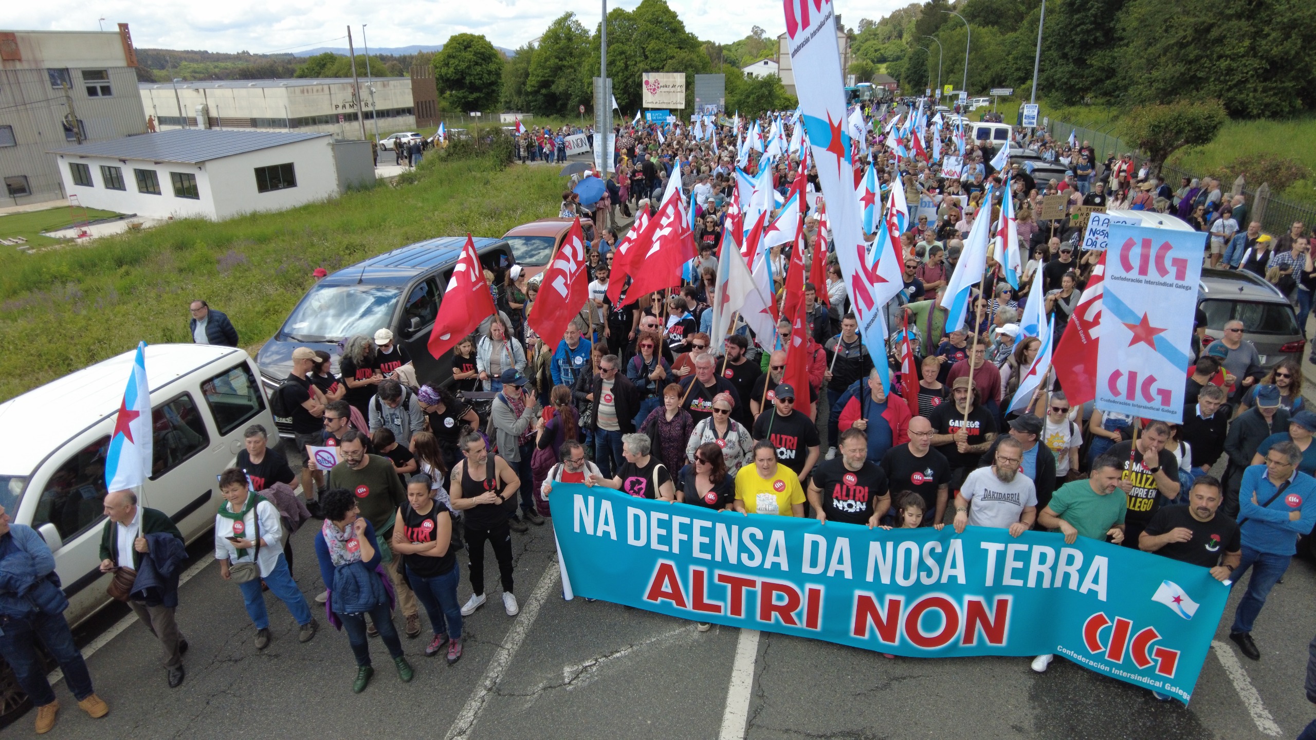 A CIG participou na manifestación que tivo lugar este domingo en Palas de Rei contra a fábrica de Altri e á que acudiron milleiros de persoas de todo o país para amosar o seu rexeitamento masivo a este proxecto depredador. A central nacionalista, que levou unha faixa propia co lema "Na defensa da nosa terra, Altri NON" e puxo autobuses dende as principais cidades para facilitar o desprazamento, rexeita o modelo de industria de enclave que representa e critica que o goberno de Rueda o declare de utilidade pública e proxecto industrial estratéxico.