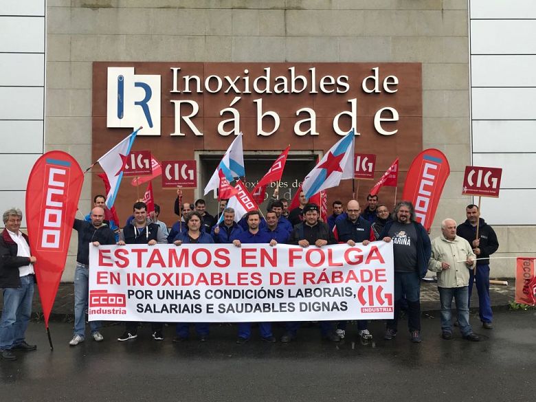 A totalidade do persoal operario de Inoxidables de Rábade (situada no Concello de Outeiro de Rei) está secundando a primeira xornada da folga indefinida para esixir melloras salariais e laborais. As e os traballadores están secundando paros laborais de dúas horas en cada unha das quendas e concentracións diante das portas da fábrica para reclamar a dirección que sente negociar a táboa reivindicativa.