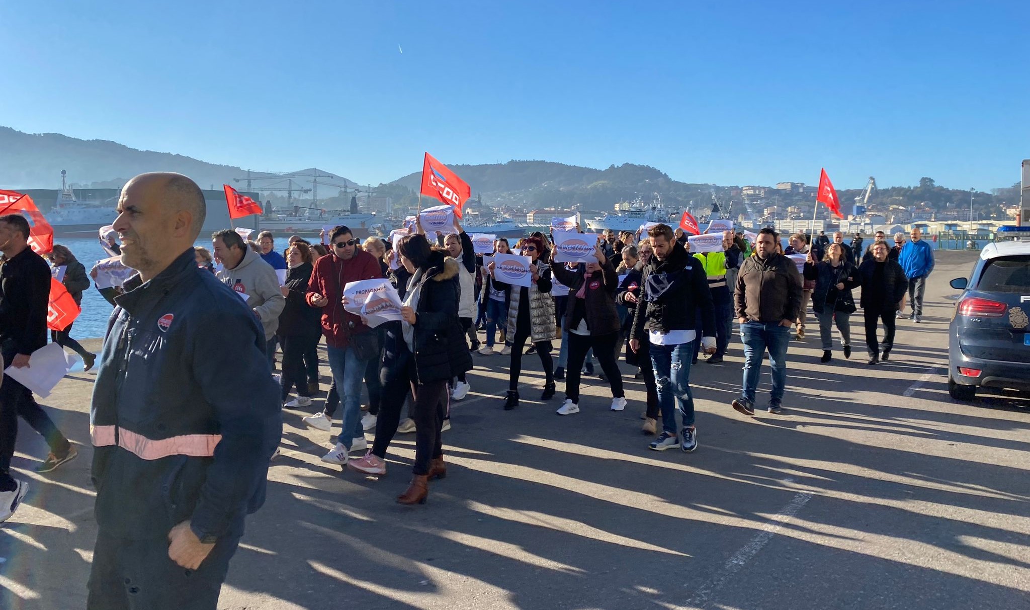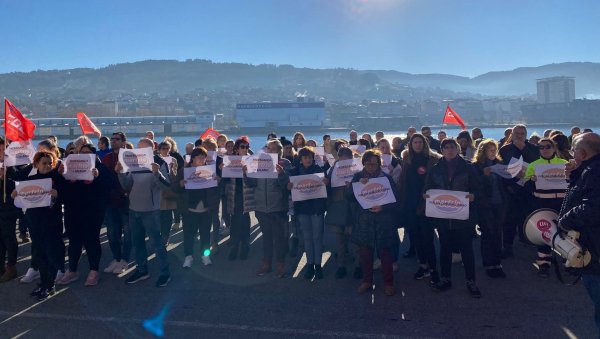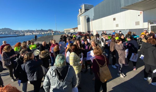 O 100% do cadro de persoal de Marfrío, empresa de alimentación con sede en Marín, secundou hoxe o paro parcial dunha hora en demanda de melloras laborais e salariais e participou na mobilización para reclamar un convenio colectivo digno -tras máis dun ano de negociacións sen acordo- que se desenvolveu na contorna das instalacións da compañía no espigón norte do Porto marinense.
