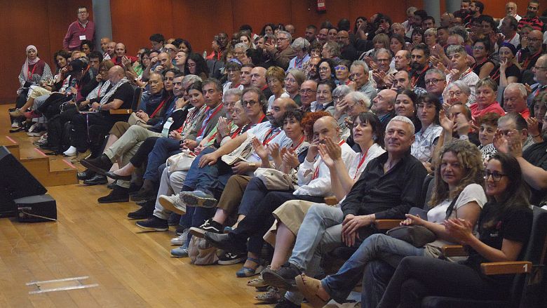 Procedeuse á lectura das resolucións, aprobadas por aclamación, e interviñeron parte das delegacións convidadas. Foi a quenda de Garbiñe Aramburu, coordenadora xeral de Langile Abertzaleen Batzordeak (LAB); Filipe Manuel Marques Pereira, da Dirección da Confederaçao Geral de Trabalhadores de Portugal (CGTP-IN); Sergi Perelló, secretario xeral da Intersindical-Confederación Sindical de Cataluña (I-CSC); Mitxel Lakuntza, secretario xeral de Eusko Langileen Alkartasuna (ELA); Maaina Fiha Salma Elrguibi, da Unión Xeral de Traballadores/as de Saguia El Hamra e Río de Oro, do Sáhara Occidental (UGTSARIO); e Soussan Taisser Abdel Salam, secretaria xeral da Unión Nacional de Xerusalén de Traballadores/as Palestinos/as e vicepresidenta da Federación Sindical Mundial (FSM).