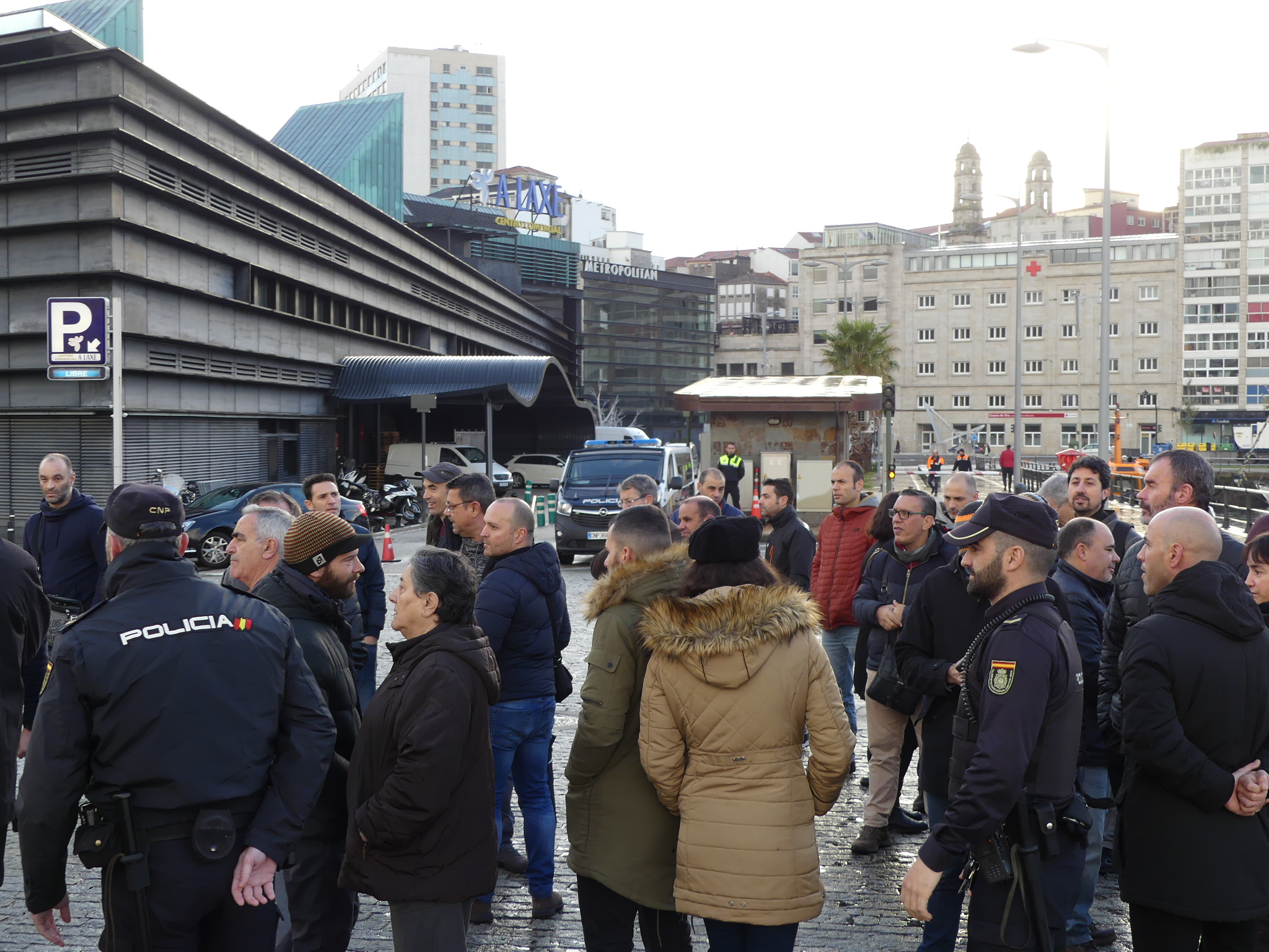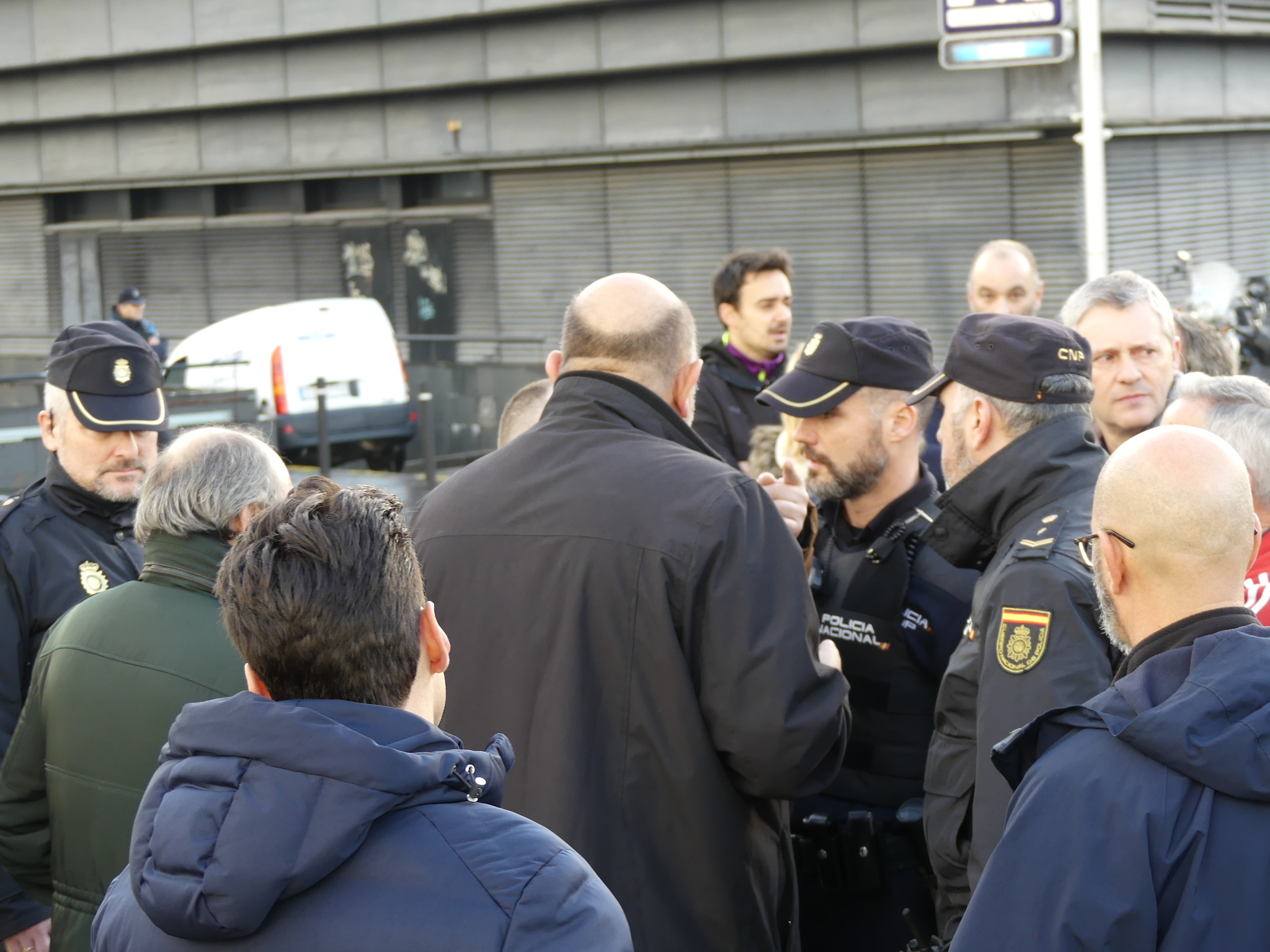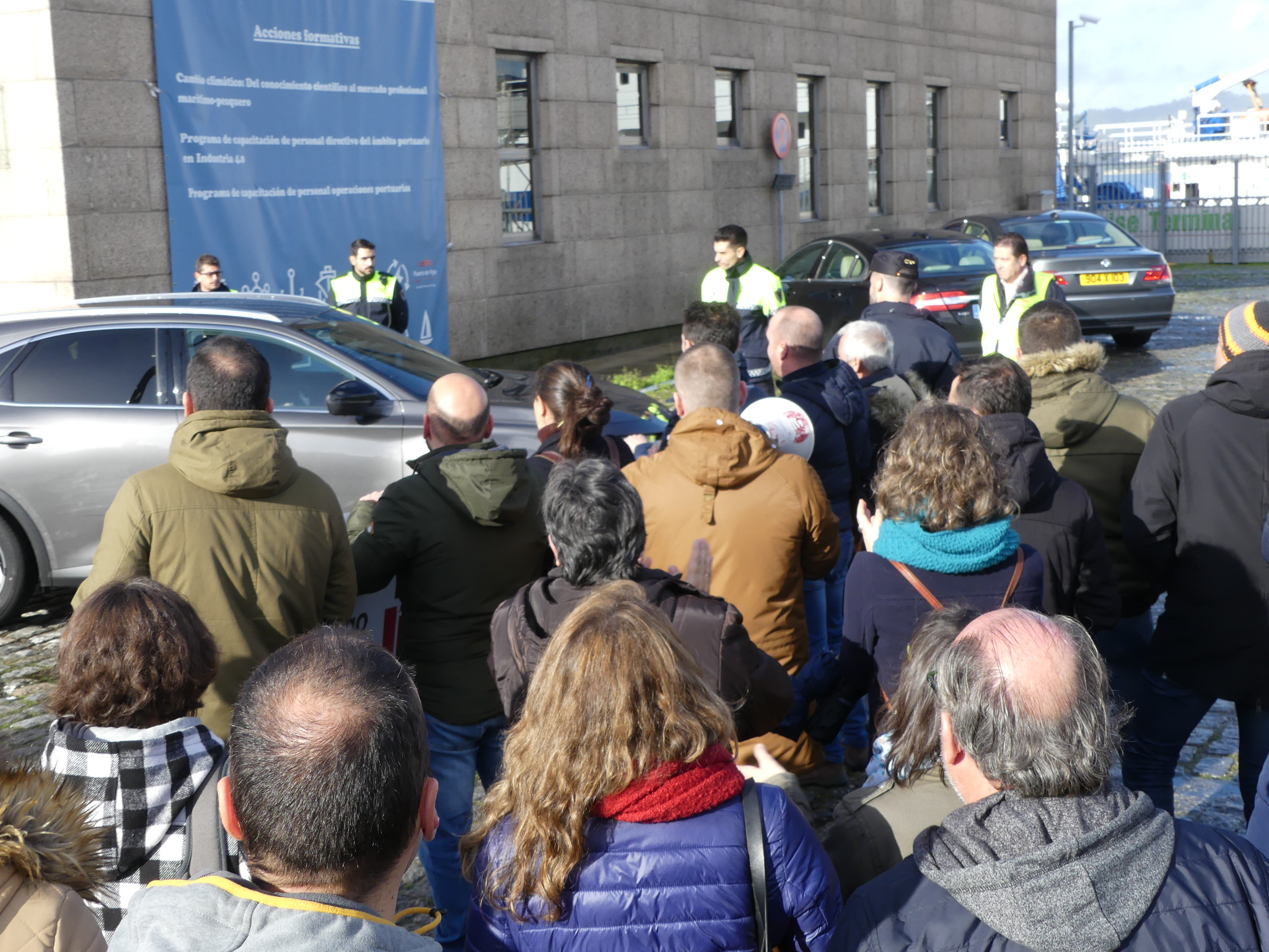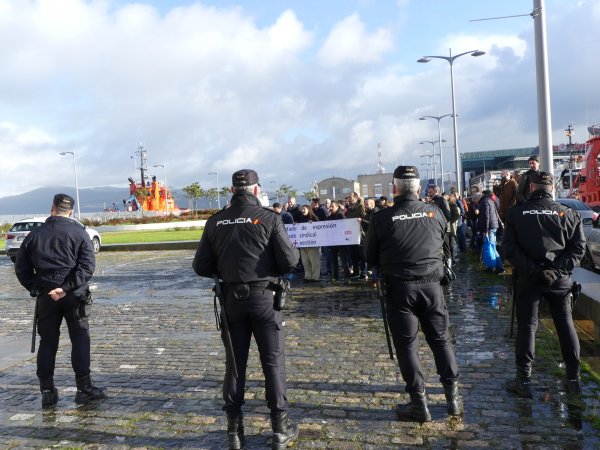 Acto seguido chegou unha dotación da Policía española para obrigalos/as a retirarse da vía de acceso ao edificio para que deixasen pasar a un dos coches oficiais que se dirixían ao consello, aínda que os manifestantes se negaron alegando que tiñan autorización da Subdelegación para achegarse até o edificio e se non se lles permitía o paso tampouco deixarían pasar o vehículo. Tras as comprobacións pertinentes, os axentes comunicáronlles que podían continuar a marcha.