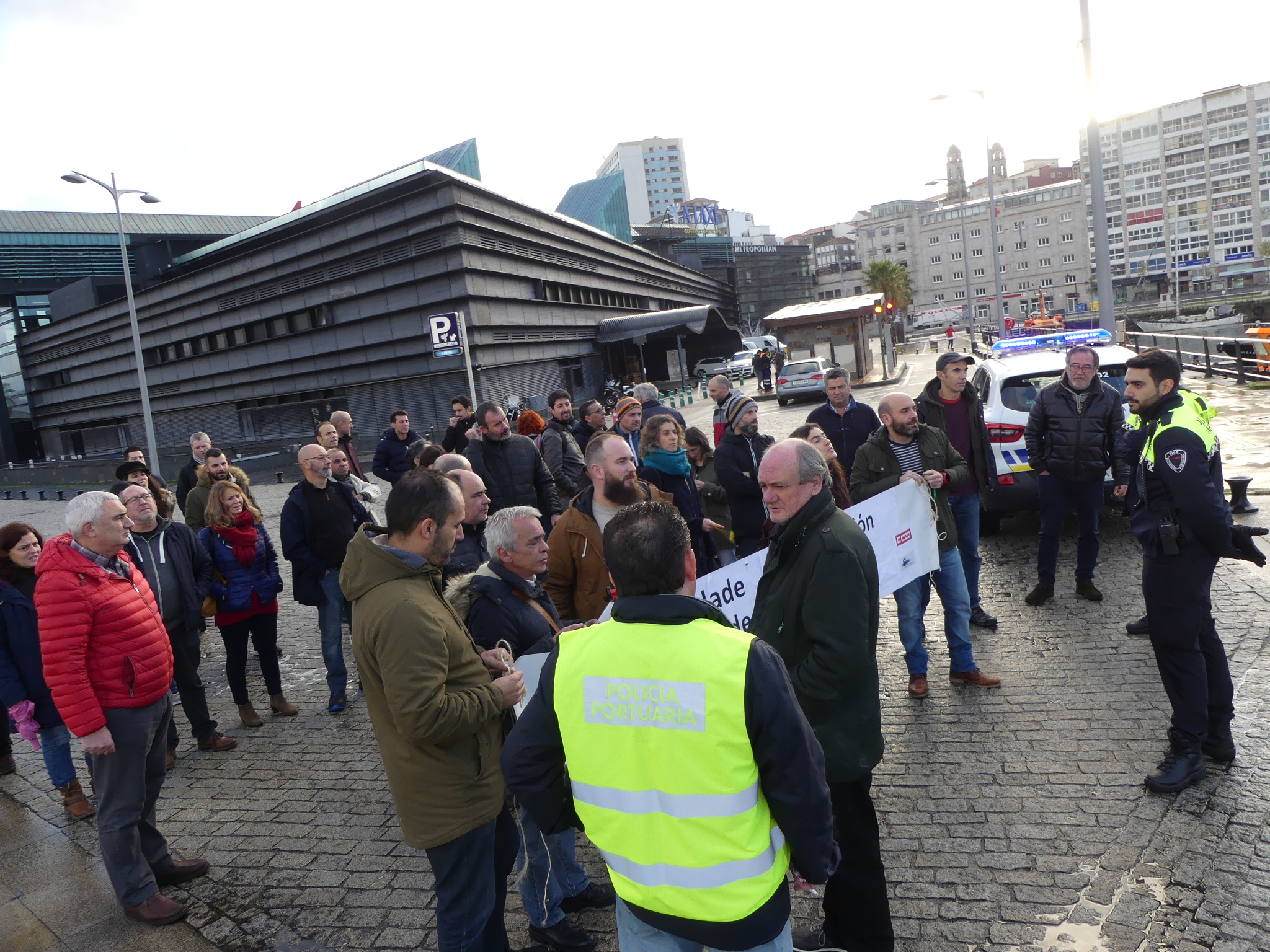 O presidente da APV intentou unha vez máis boicotear a protesta, esta vez no autorizando media hora antes do comezo da manifestación a asemblea solicitada, co obxectivo de impedir a participación dos empregados/as. Con todo, máis de medio cento de persoas percorreron a rúa Montero Ríos até o peirao, onde varios membros da Policía portuaria lles impediron o paso nun primeiro momento para evitar que se achegasen ao edificio de sesións.