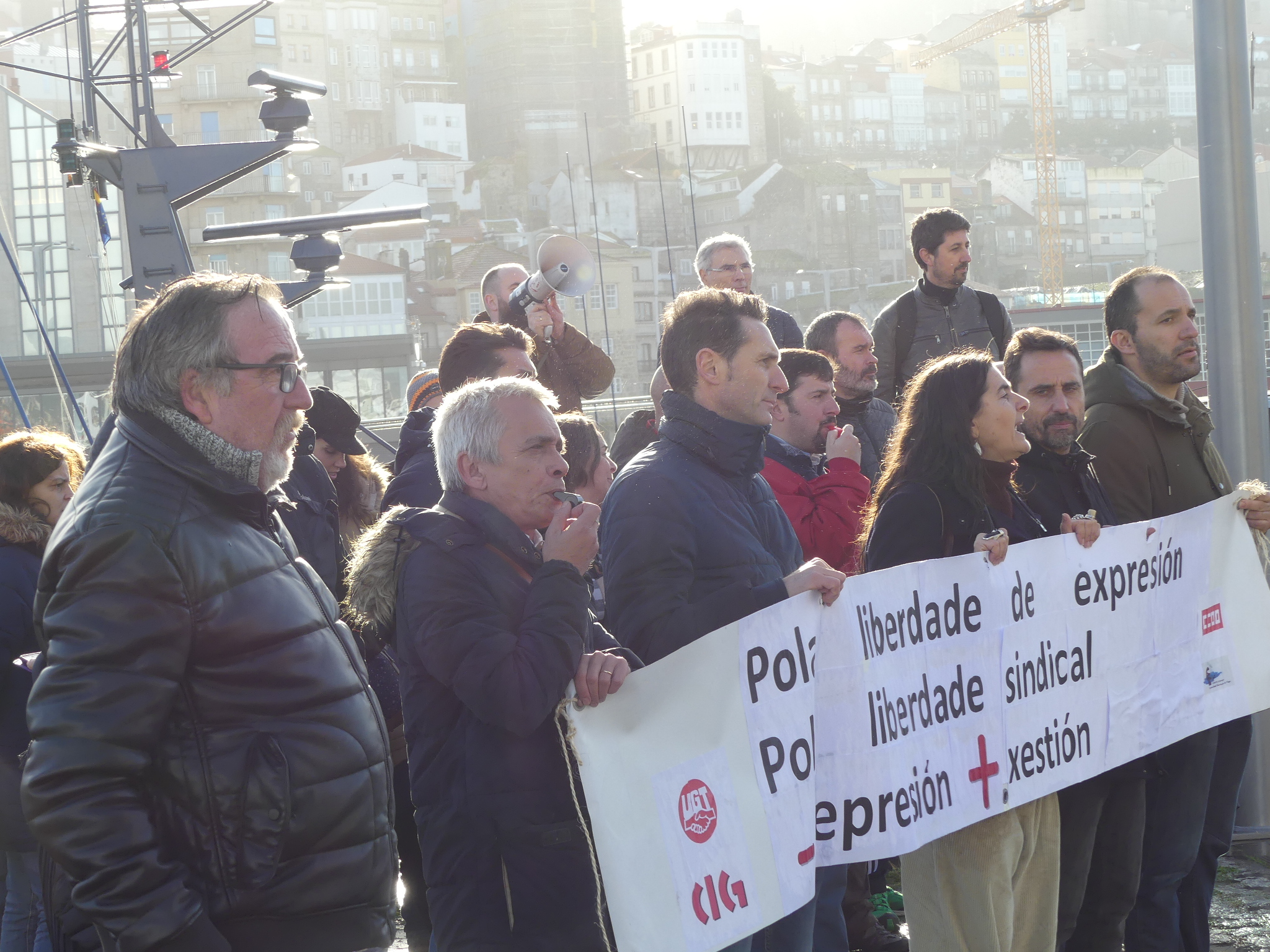 Detallou que a actual problemática orixinouse a raíz dun comunicado interno do comité no que criticaba o anuncio feito en prensa polo presidente da APV na que amosaba a intención de privatizar as lonxas e denunciaba a súa xestión. Cinco meses máis tarde os membros do comité reciben unha carta súa na que lles solicita que se retracten das súas afirmacións porque do contrario emprendería accións legais. “E un ano despois atopámonos con que catro compañeiros foron citados a un acto de conciliación no que se lles reclama 25.000 euros por presuntas inxurias e calumnias”. A partir de agora haberá que saber se López Veiga segue ou non adiante coa demanda, “que en todo caso será pola vía civil xa que a penal xa prescribiu”.