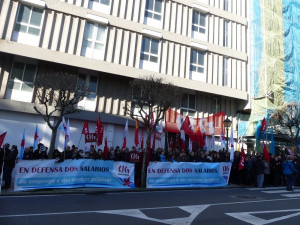Delegados e delegadas da Área Pública da CIG (Administración, Ensino e Saúde) concentráronse este mércores diante do Parlamento de Galiza para demandar uns servizos públicos de calidade e a recuperación dos dereitos laborais e salariais perdidos ao longo destes anos. A mobilización, que se repetirá o vindeiro luns, día 6 de febreiro, coincidiu co debate e votación dos Orzamentos da Xunta de Galiza para o ano 2017.