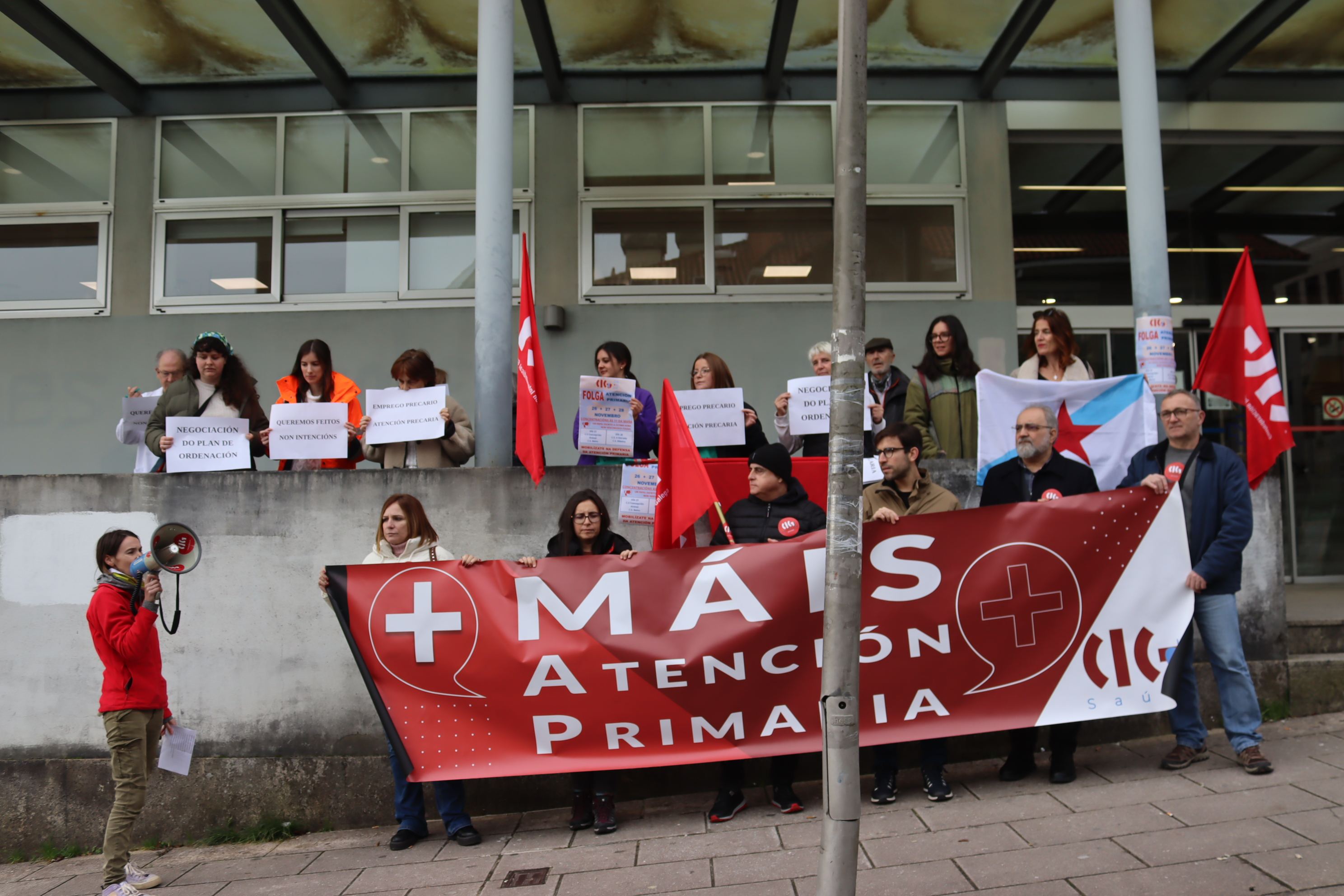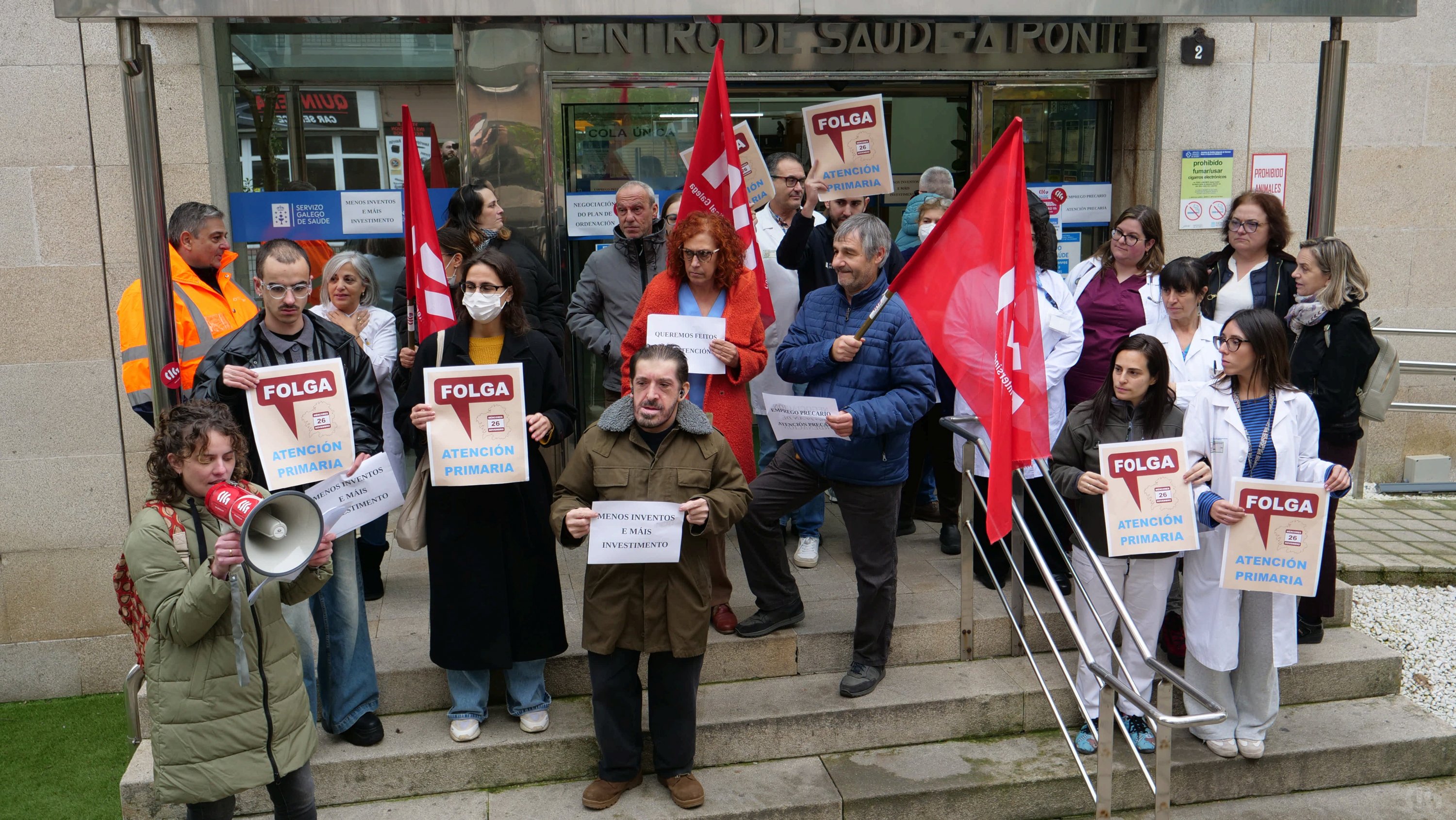 No segundo día de folga na Atención Primeira, o persoal concentrouse diante de diversos centros de saúde do país para exixir melloras nas condicións de traballo, a negociación e aplicación inmediata do plan de ordenación dos recursos humanos e unha aposta política en defensa deste ámbito fundamental da sanidade pública.