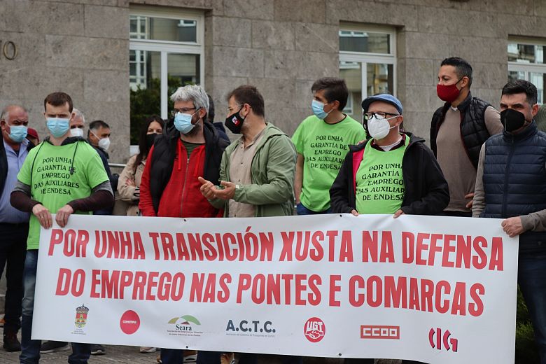 O comité de crise das Pontes realizou este venres unha concentración diante da Delegación do Goberno na Coruña para esixir a convocatoria inmediata da Mesa de Transición Xusta na que concretar as garantías de emprego, os proxectos e alternativas industrias para a localidade e reclamar que se proceda xa á sinatura do Convenio de Transición.