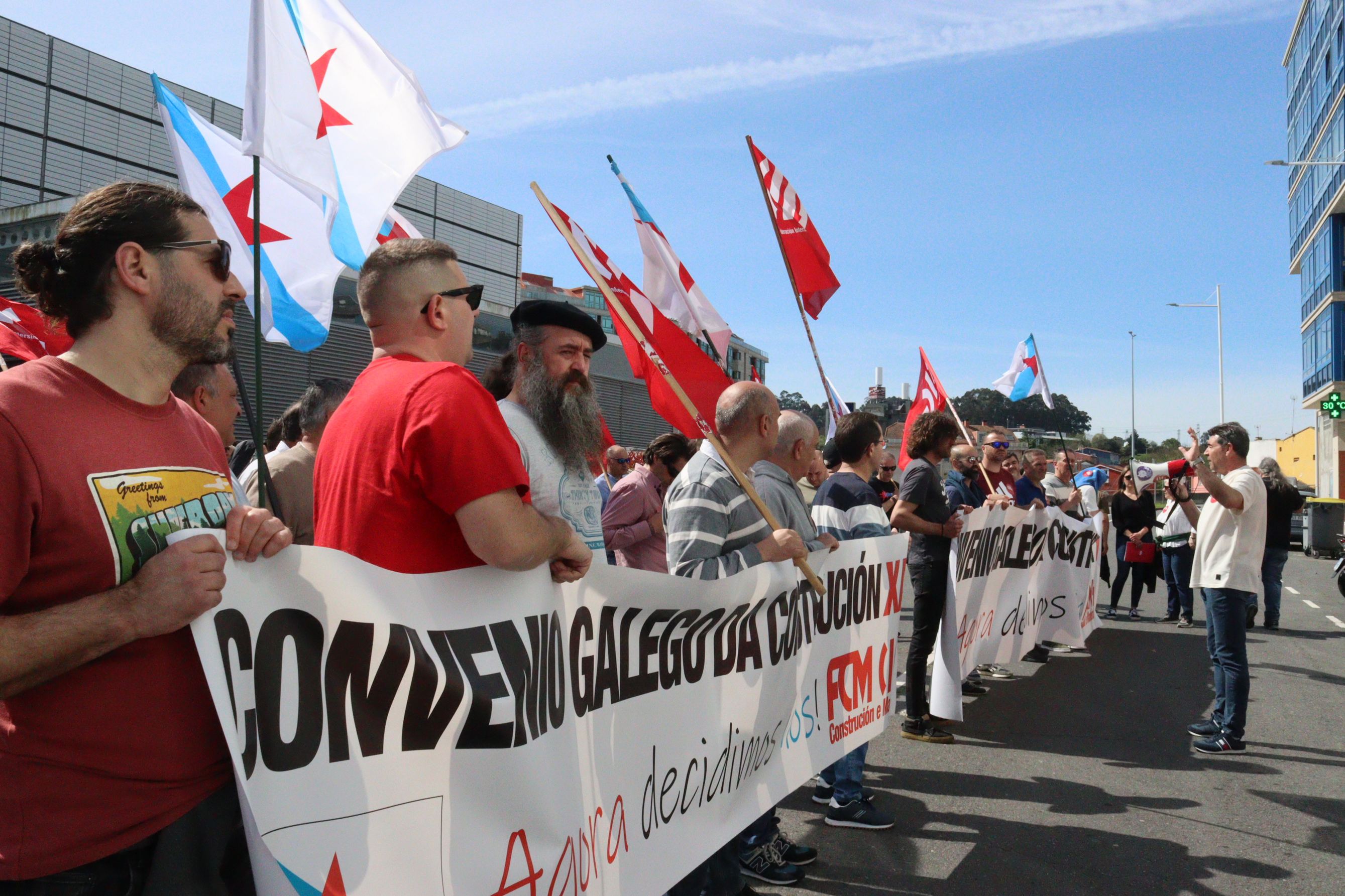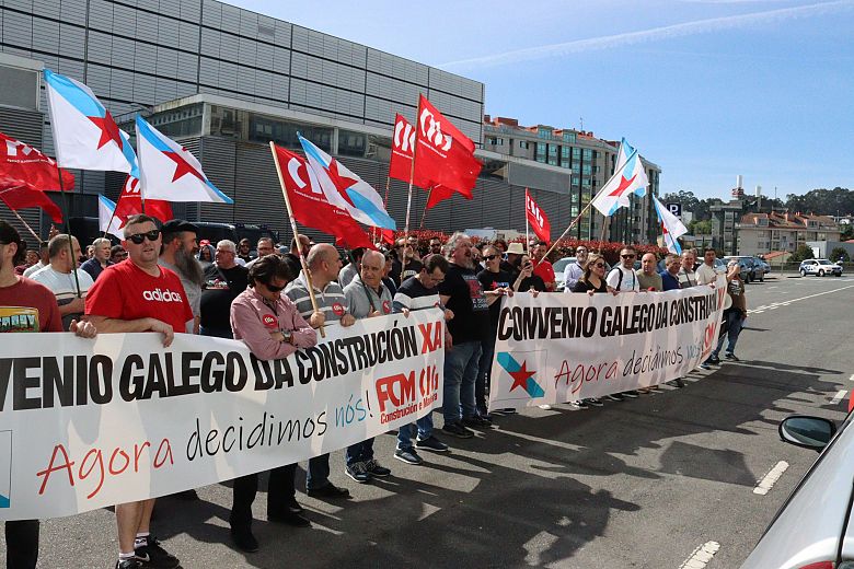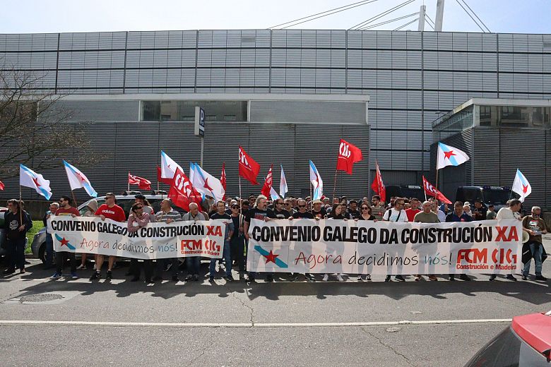 Delegas e delegados da CIG da Construción retomaron este martes as mobilizacións en demanda da negociación dun convenio galego no sector que permita seguir avanzando en dereitos e que blinde as melloras pactadas nos convenios provinciais fronte ao estatal. Despois das protestas en Compostela, Ourense e Vigo, nesta ocasión, a FCM-CIG levou as súas reivindicacións até a sede da patronal da Coruña, APECCO, e xa avanzou a posibilidade de ir a unha folga sectorial se o empresariado continúa ignorando as demandas do persoal.