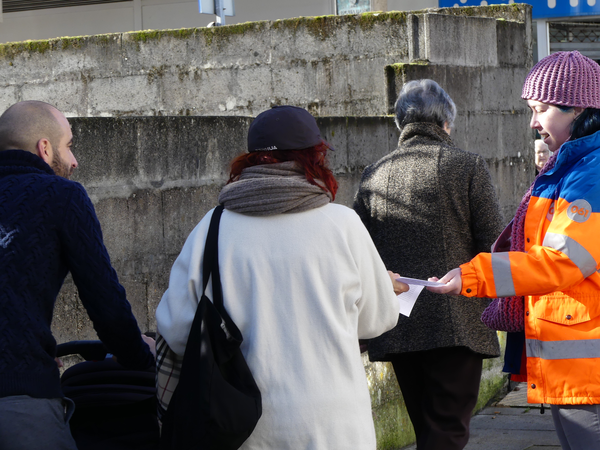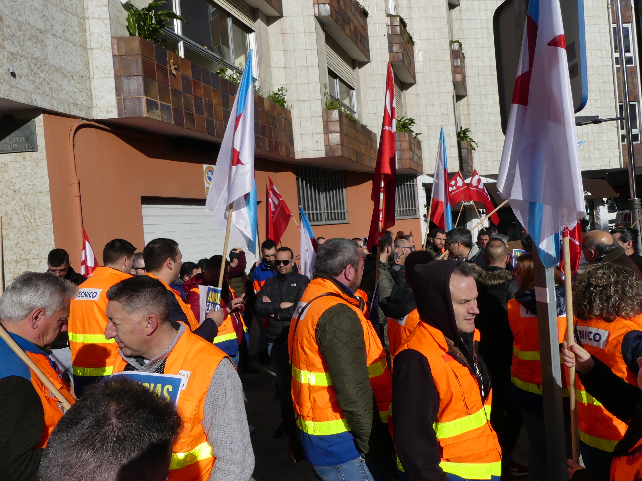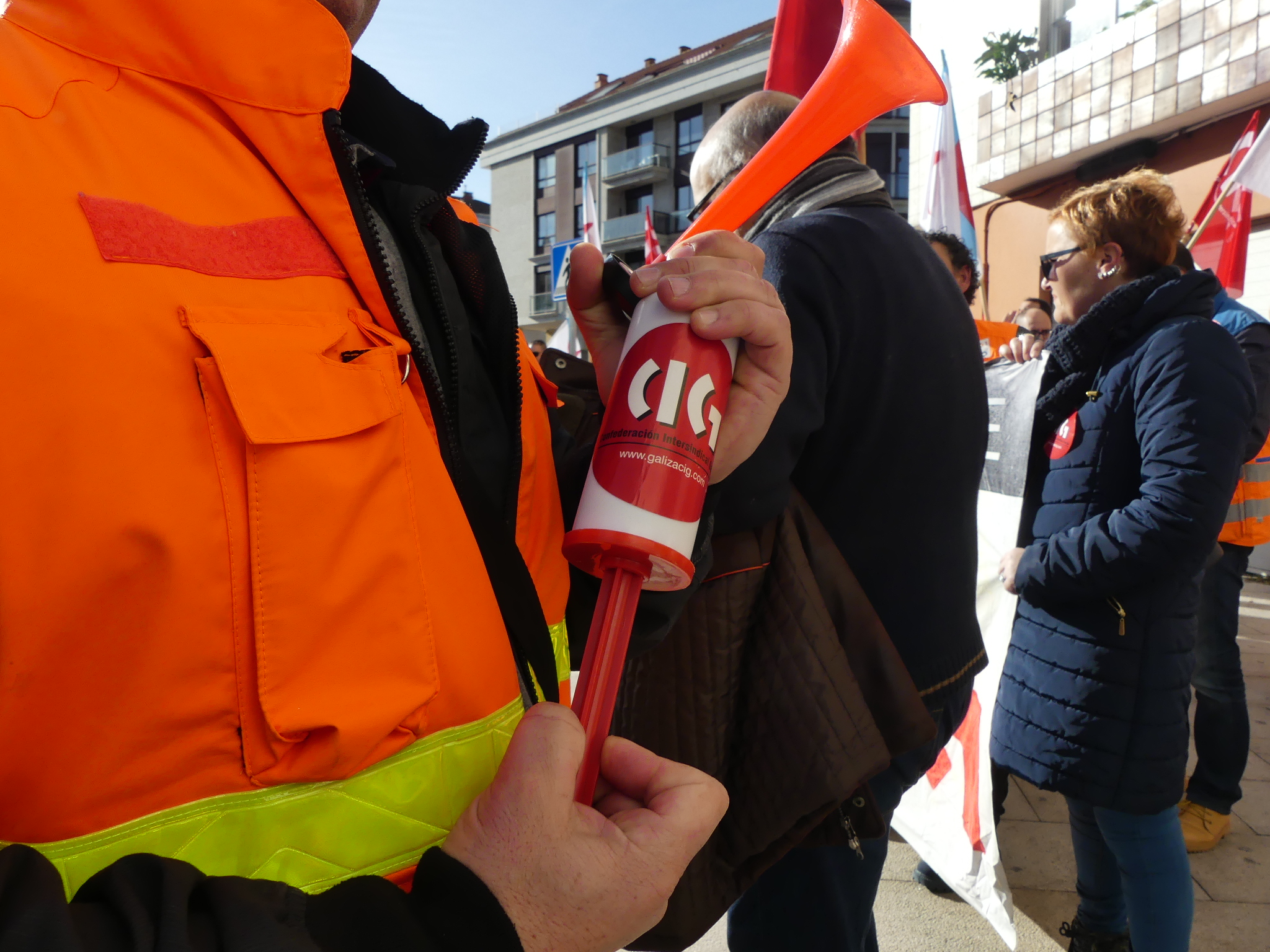 Traballadores/as e delegados/as da FGAMT-CIG do transporte sanitario mobilizáronse hoxe diante da vivenda do conselleiro de Sanidade, Jesús Vázquez Almuíña, en Baiona, para reclamarlle a súa intervención no conflito laboral aberto tras a ruptura das negociacións do convenio colectivo. Dende a central adiantaron esta mesma semana que barallan a convocatoria dunha folga no sector das ambulancias no caso de que a patronal non abandone a súa proposta de aplicar rebaixas salariais do 6-7% e sociais de arredor do 3%.