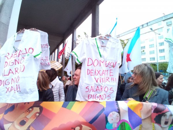 Traballadoras das residencias privadas continuaron este mércores coas mobilizacións para reclamar un convenio colectivo que dignifique as condicións salariais e laborais do sector. Nesta ocasión, a protesta realizouse diante da residencia DomusVi de Ferrol, onde as compañeiras amosaron o seu rexeitamento a unha proposta patronal "que non fai máis que afondar na precariedade económica e social na que estamos a desenvolver o noso traballo".