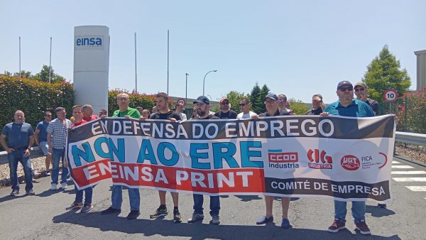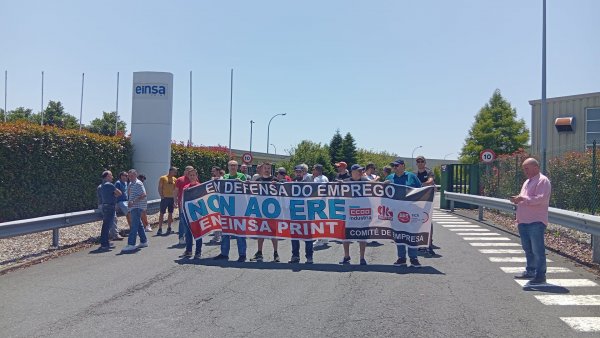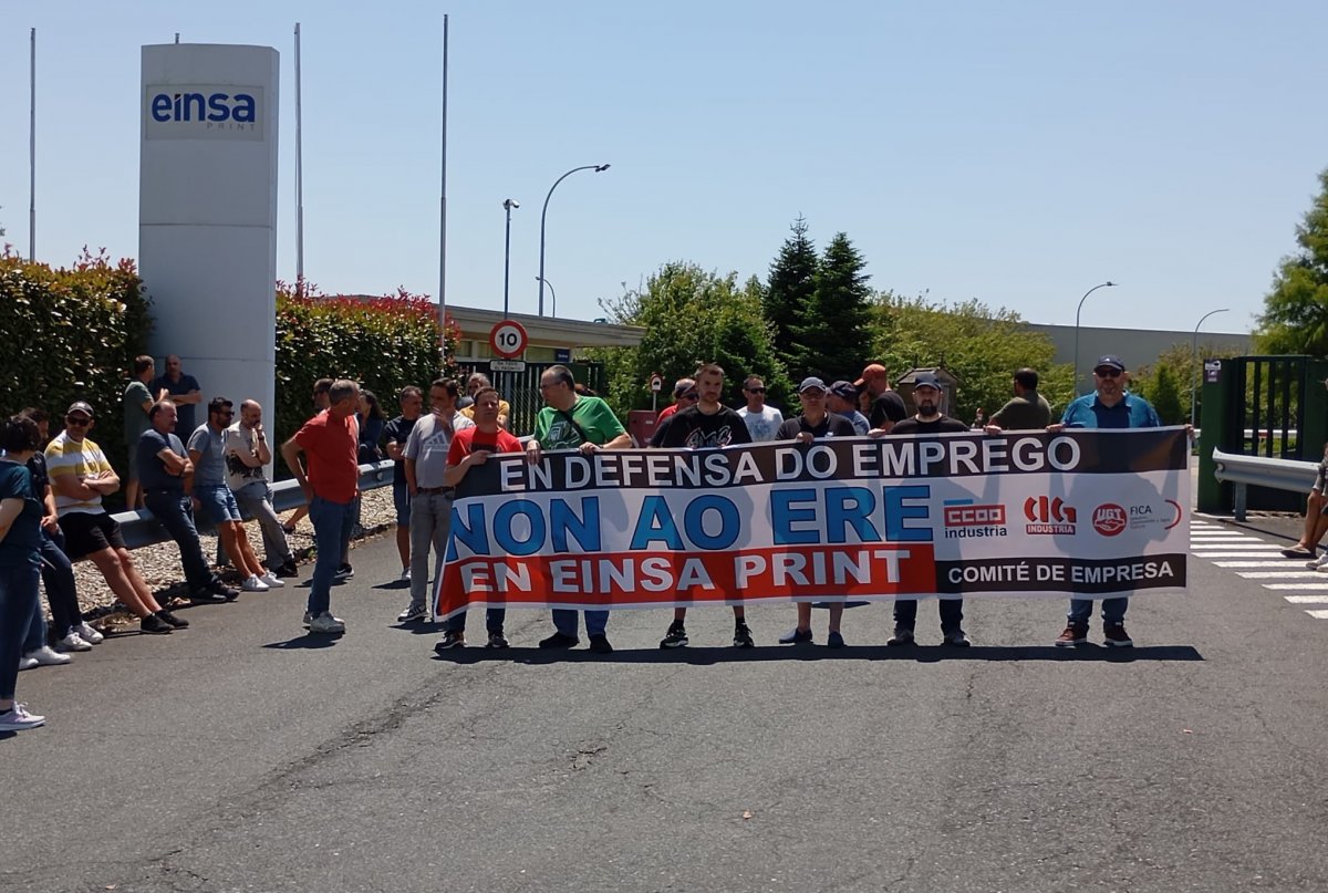 O persoal de Einsa Print desenvolveu este luns un paro laboral en rexeitamento ao ERE pola empresa para a planta das Pontes, tan só 15 meses despois de aplicar outro expediente de extinción que supuxo o despedimento de 120 persoas. Coincidindo coa folga parcial, que se repetirá nos próximos días, o persoal concentrouse ás portas das instalacións en Penapurreira.