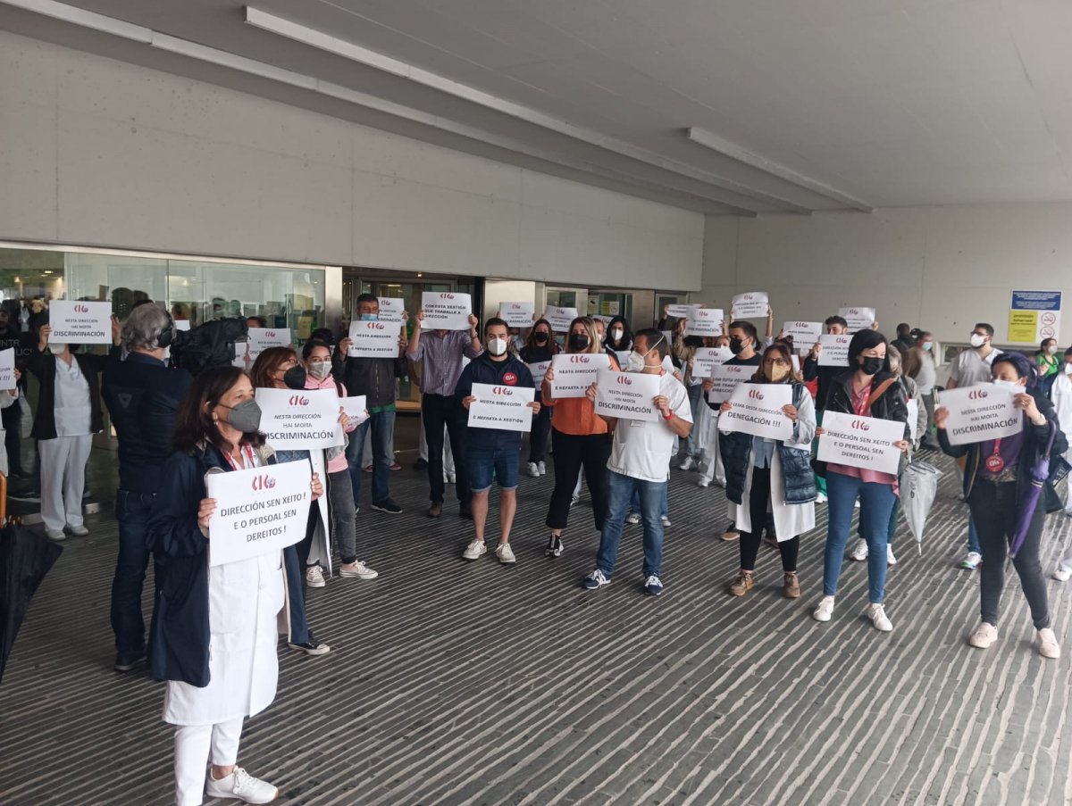 Persoal de enfermería do HULA concentrouse este mércores para denunciar a discriminación que padecen, xa que son o único centro de toda a área sanitaria de Lugo-A Mariña-Monforte no que se denegan pro sistema os permisos (vacacións, días de libre disposición, para formación etc.). Na protesta, convocada pola CIG-Saúde, reclamouse "outra xestión ou outra dirección" capaz de esgotar todas as alternativas posíbeis para que as traballadoras e traballadores poidan gozar dos seus dereitos.