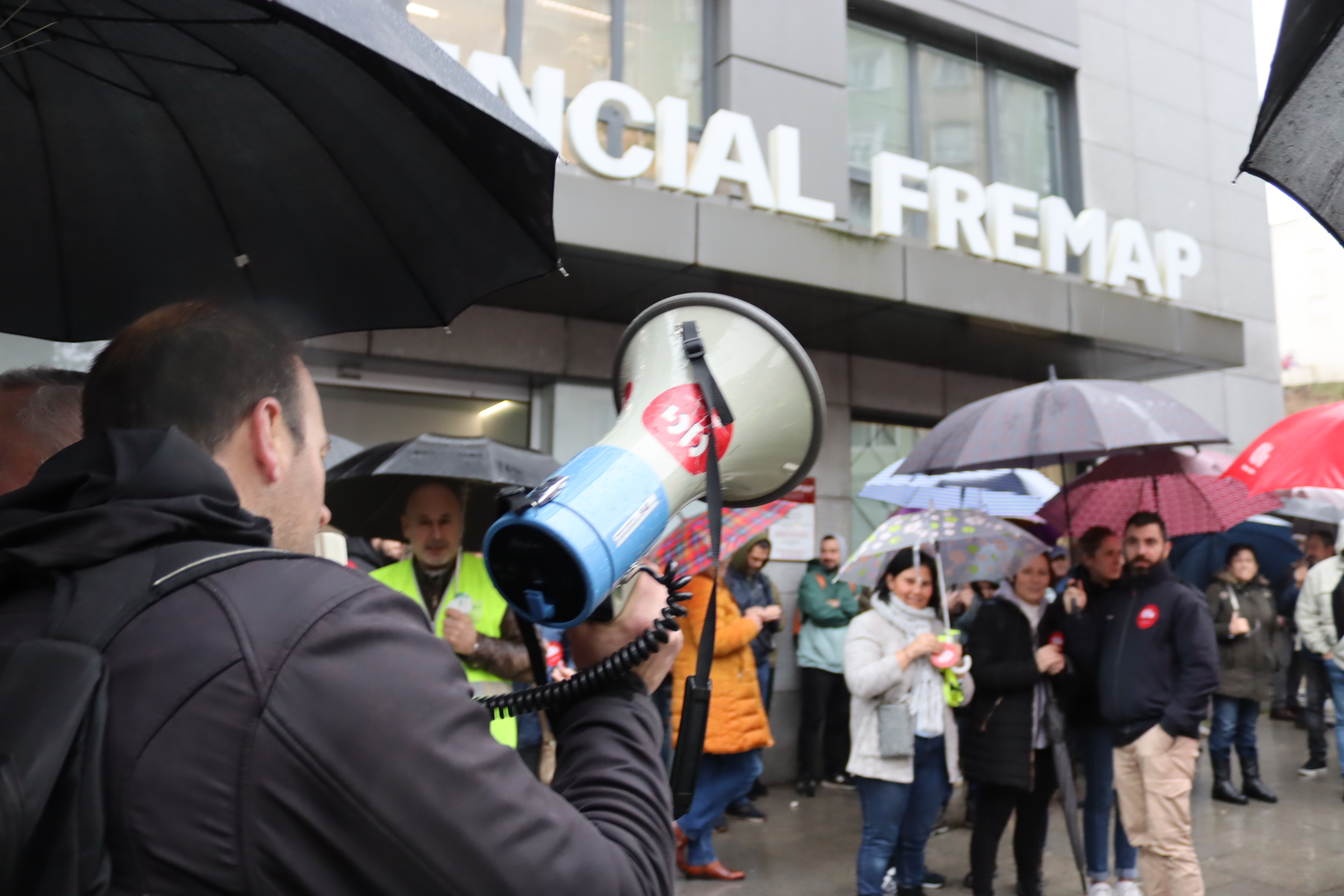 Un nutrido grupo de traballadores/as de FCC, concesionaria do servizo de recollida do lixo e limpeza viaria do Concello de Vigo, desenvolveu hoxe unha concentración diante de FREMAP para denunciar que a mutua se nega a dar baixas no caso de doenzas laborais e para reclamar unha atención sanitaria digna. Ademais, o comité de empresa baralla presentar unha demanda penal porque a mutua se nega tamén a prestar atención médica nalgúns casos.