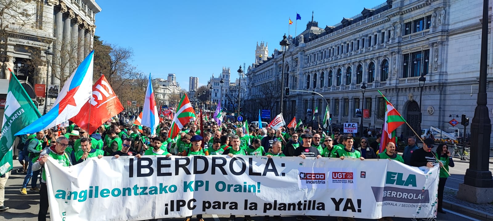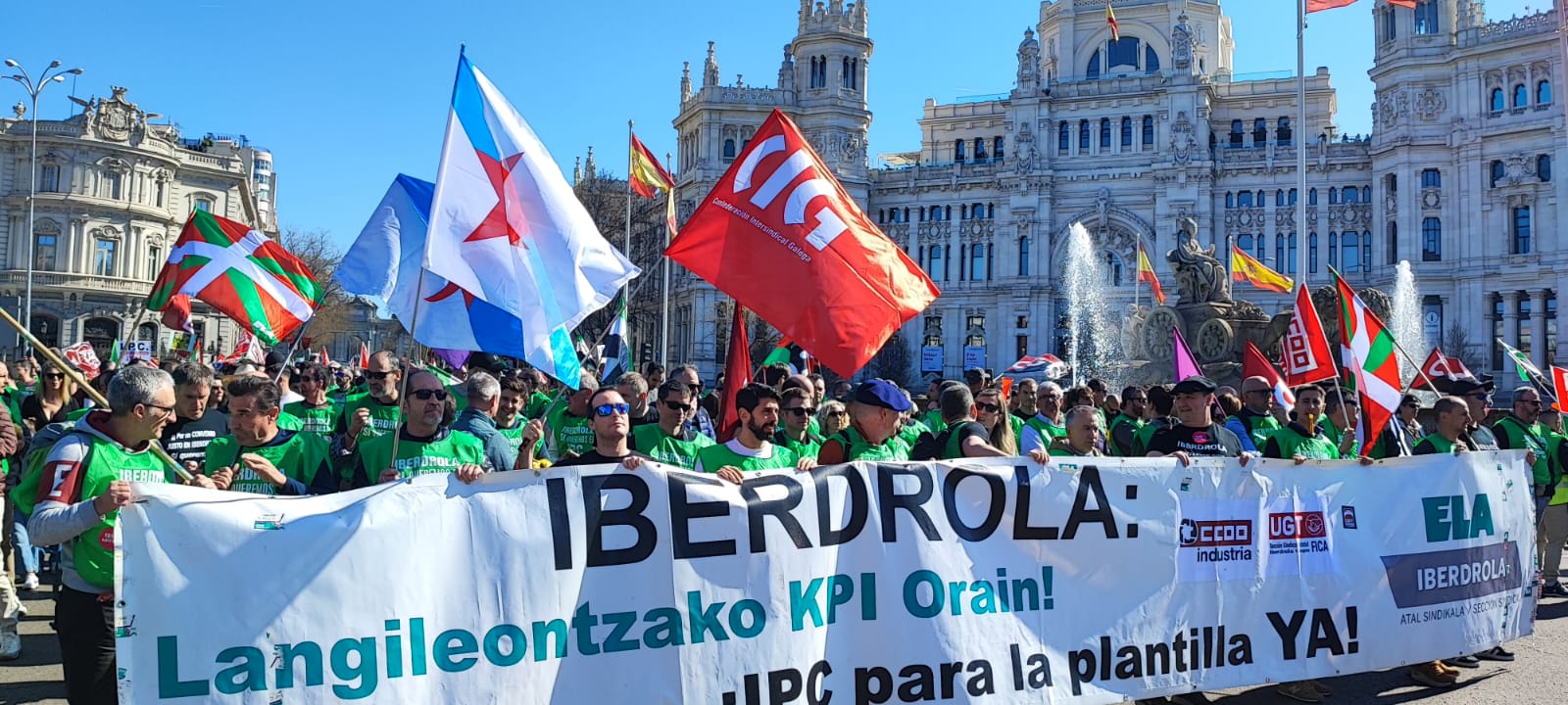 Persoal de Iberdrola de todo o Estado -tamén de Galiza- mobilizouse este sábado 28 polas rúas de Madrid para reclamar melloras laborais e denunciar a “mala fe” e a “avaricia” amosada pola empresa na negociación do IX Convenio Colectivo.