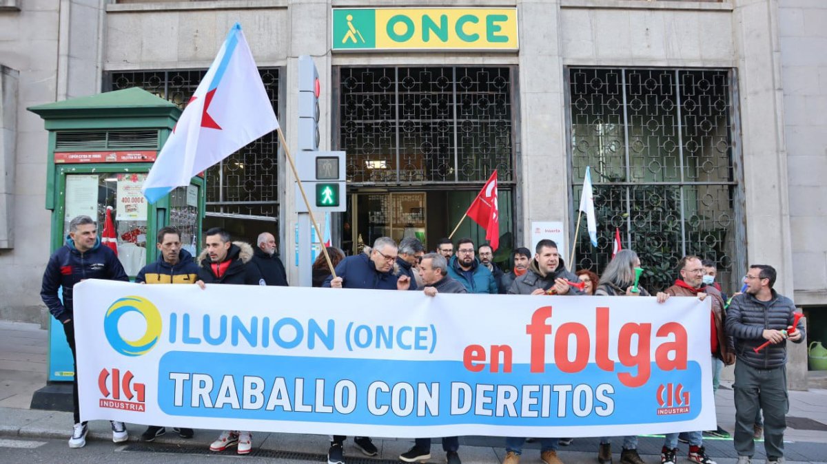 A CIG retomou hoxe as mobilizacións para rexeitar a represión sindical e o acoso laboral contra os seus representantes en Ilunion Servicios Industriales, centro especial de emprego do grupo ONCE, unha vez que a dirección está a intensificar as sancións coa vista posta na próxima celebración de eleccións sindicais. Persoas traballadoras e delegados/as da central sindical desenvolveron unha concentración diante da sede da ONCE en Vigo ás 11:00 horas.