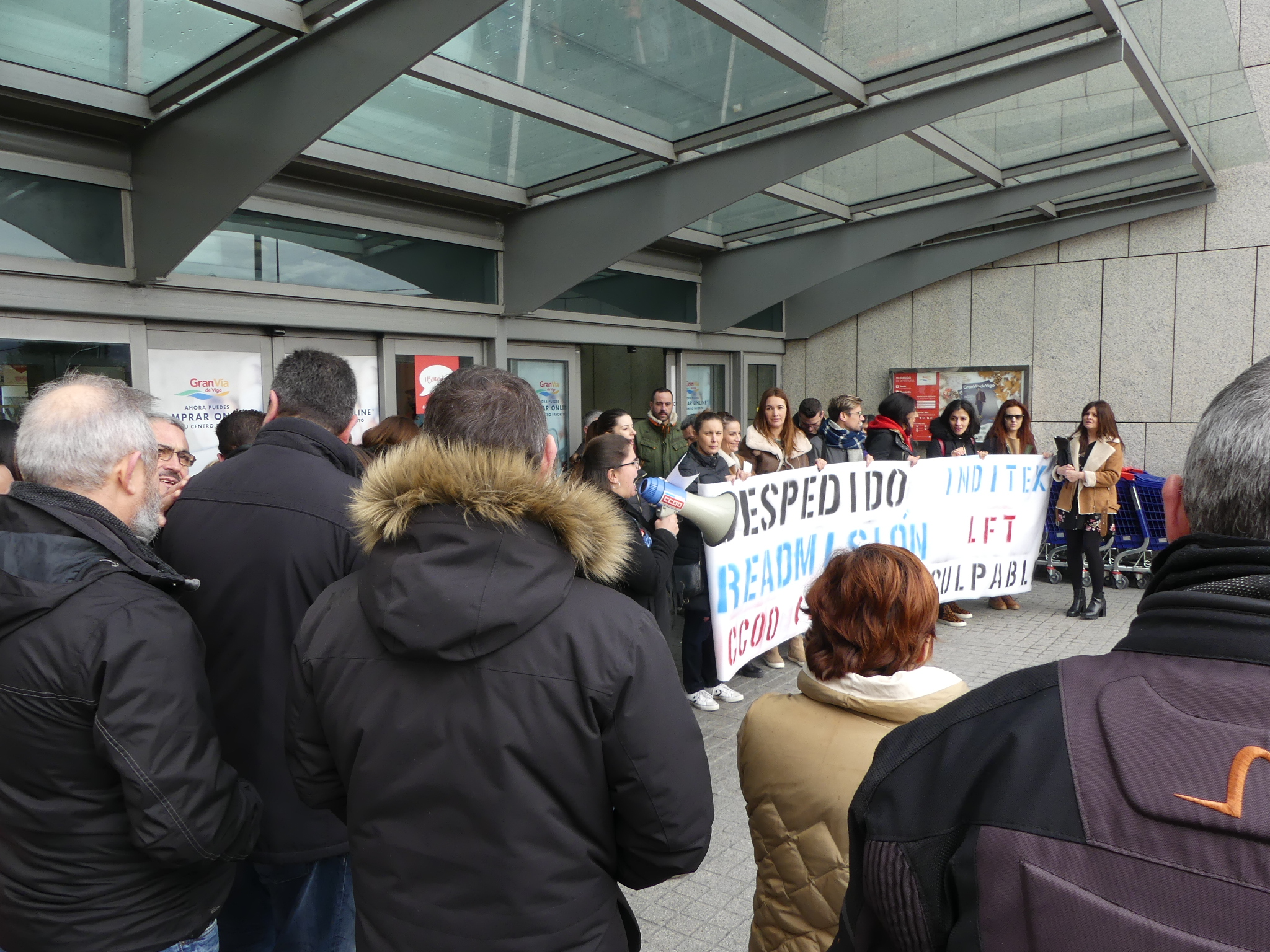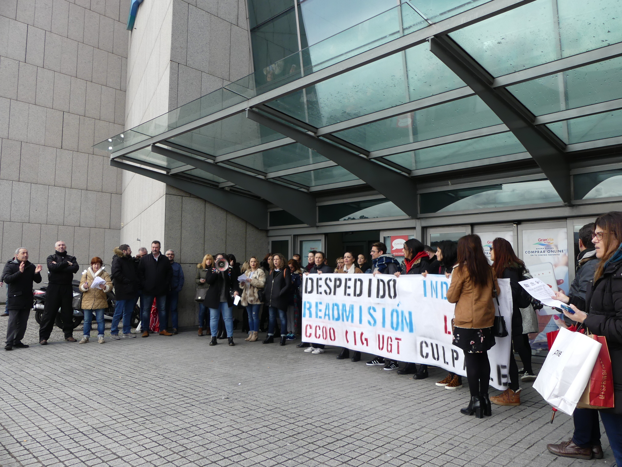 Durante a protesta convocada polo comité (CCOO, UGT e CIG) ás portas do centro comercial berráronse consignas como “Inditex, escoita, Lefties está en loita” ou “Amancio, solución, despedido readmisión” e repartíronse panfletos informativos nos que se critica a decisión da empresa e se lembra que o afectado, que ocupaba o cargo de segundo encargado, conta co apoio de todas/os as súas compañeiras/es “porque sempre se preocupou polo benestar do cadro de persoal e porque o clima laboral fose o perfecto para desenvolver o noso traballo”.