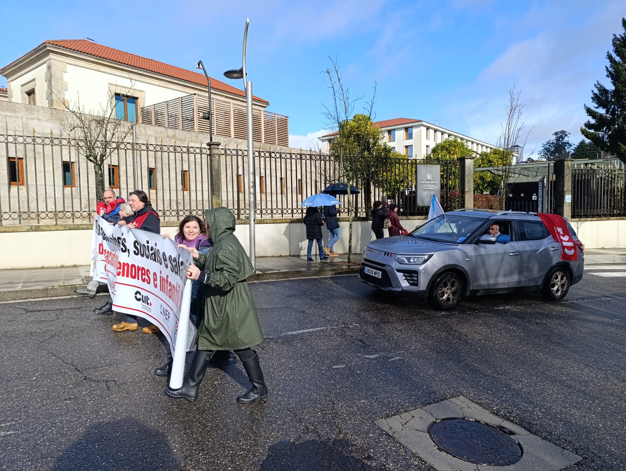 A protesta foi convocada por CIG-Ensino, CCOO Ensino, UGT-SP Ensino, USO, CUT e SNEP quen xa anunciaron novas mobilizacións nas rúas e nos centros de traballo se a Consellaría de Política Social -que ten a compentencia nestes ámbitos- segue facendo oídos xordos as xustas e lexítimas reivindicacións do persoal.