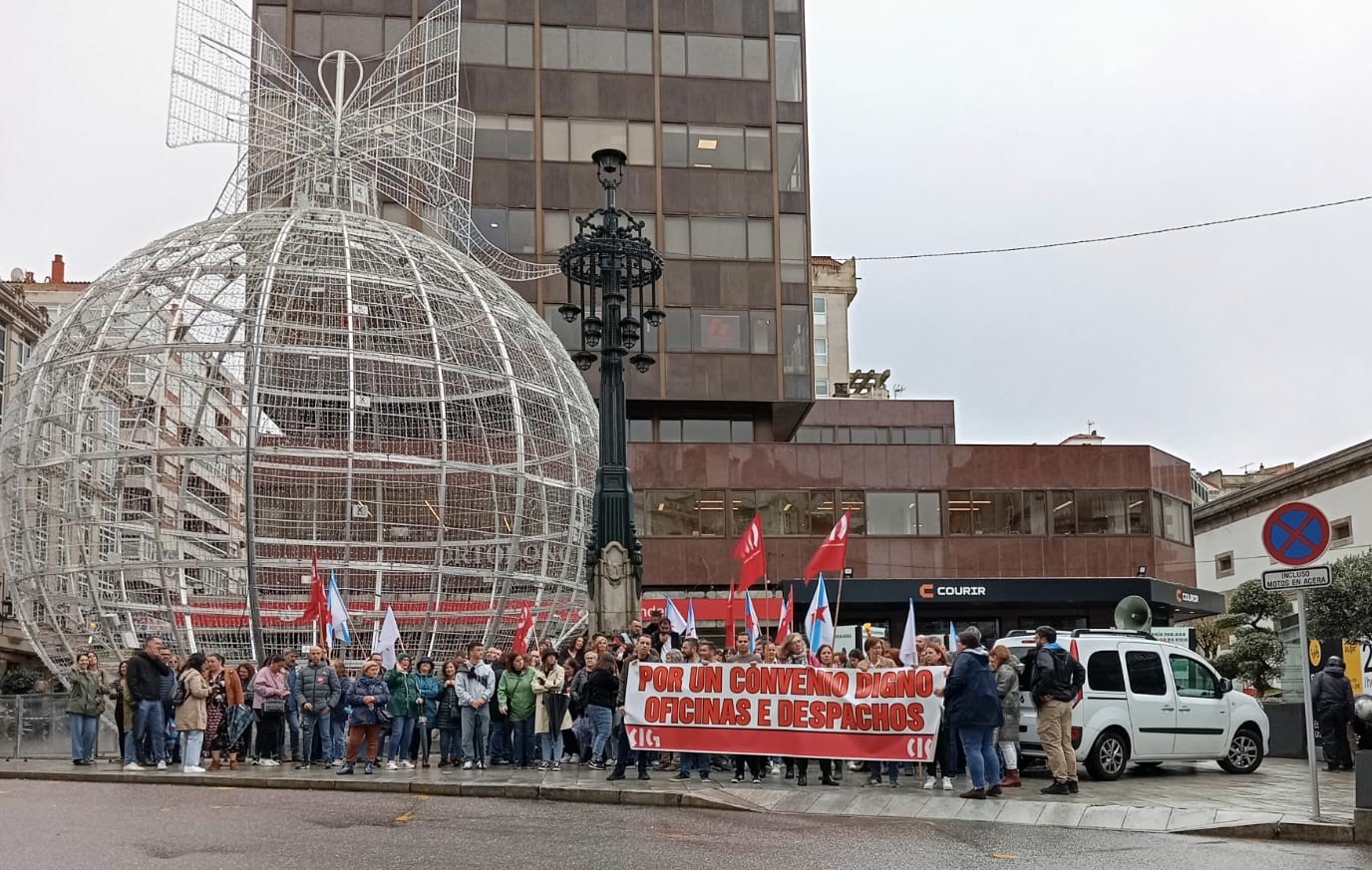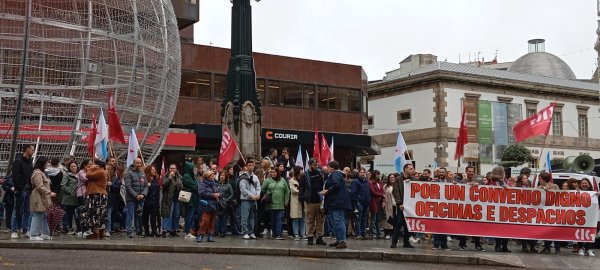 Persoal do sector de oficinas e despachos da provincia de Pontevedra mobilizouse hoxe en Vigo coincidindo co paro convocado pola CIG ante a negativa da patronal a retomar a mesa negociadora do convenio. As protestas volven despois de que o empresariado nin sequera aceptase participar nunha mediación do AGA no Consello Galego de Relacións Laborais.
