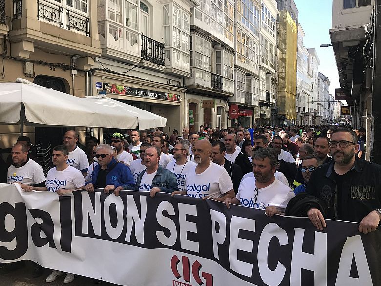 "Poligal non pode pechar", aseverou, para a continuación denunciar que en todo esta proceso de desmantelamento industrial da comarca hai "culpábeis e cómplices, que incluso hoxe en día continúan gobernando tanto en Madrid como en Galiza". O secretario da CIG de Ferrol foi moi crítico coa política industrial da Xunta do PP, a que acusou de estar totalmente colonizada e "mirando para outro lado, mentres o tecido produtivo deste país desaparece".