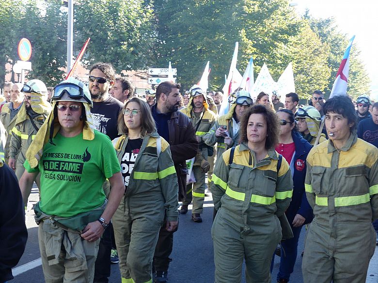 Traballadoras e traballadores de SEAGA, en folga indefinida dende o pasado 16 de setembro, manifestáronse este martes, desde San Lázaro até o edificio administrativo da Xunta de Galiza, en Compostela, en demanda de igualdade de oportunidades no acceso ao Servizo de Prevención e Defensa contra Incendios Forestais de Galiza (SPDCIF). Xunto a isto reclamaron que se introduzan d einmediato os cambios necesarios no decreto de contratación da Xunta e poder puntuar por todo o tempo traballado en SEAGA realizando servizos de extinción.