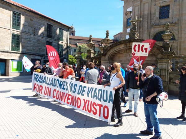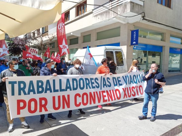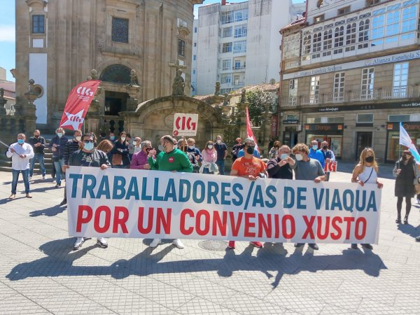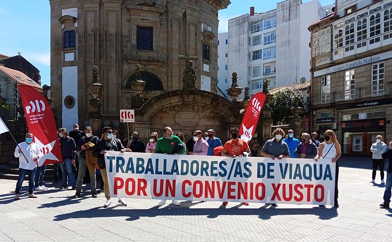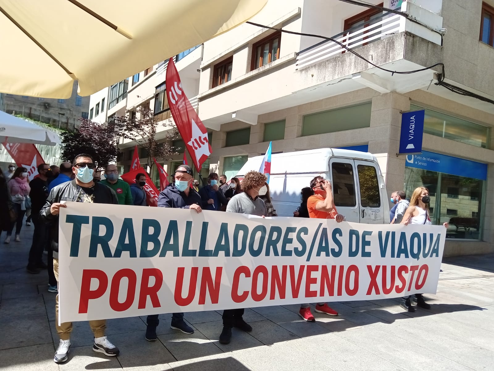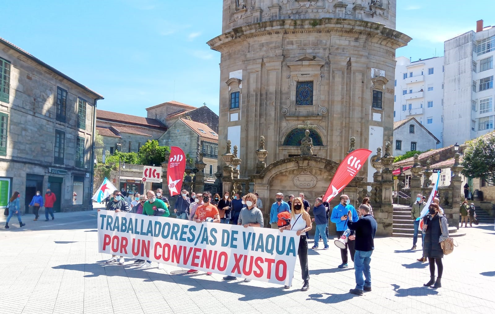 Máis de medio cento de traballadores/as de Viaqua, concesionaria dos servizos municipais de abastecemento e depuración de distintas localidades galegas, iniciaron hoxe en Pontevedra un calendario de mobilizacións para reclamar un convenio xusto e denunciar o inmobilismo da dirección.