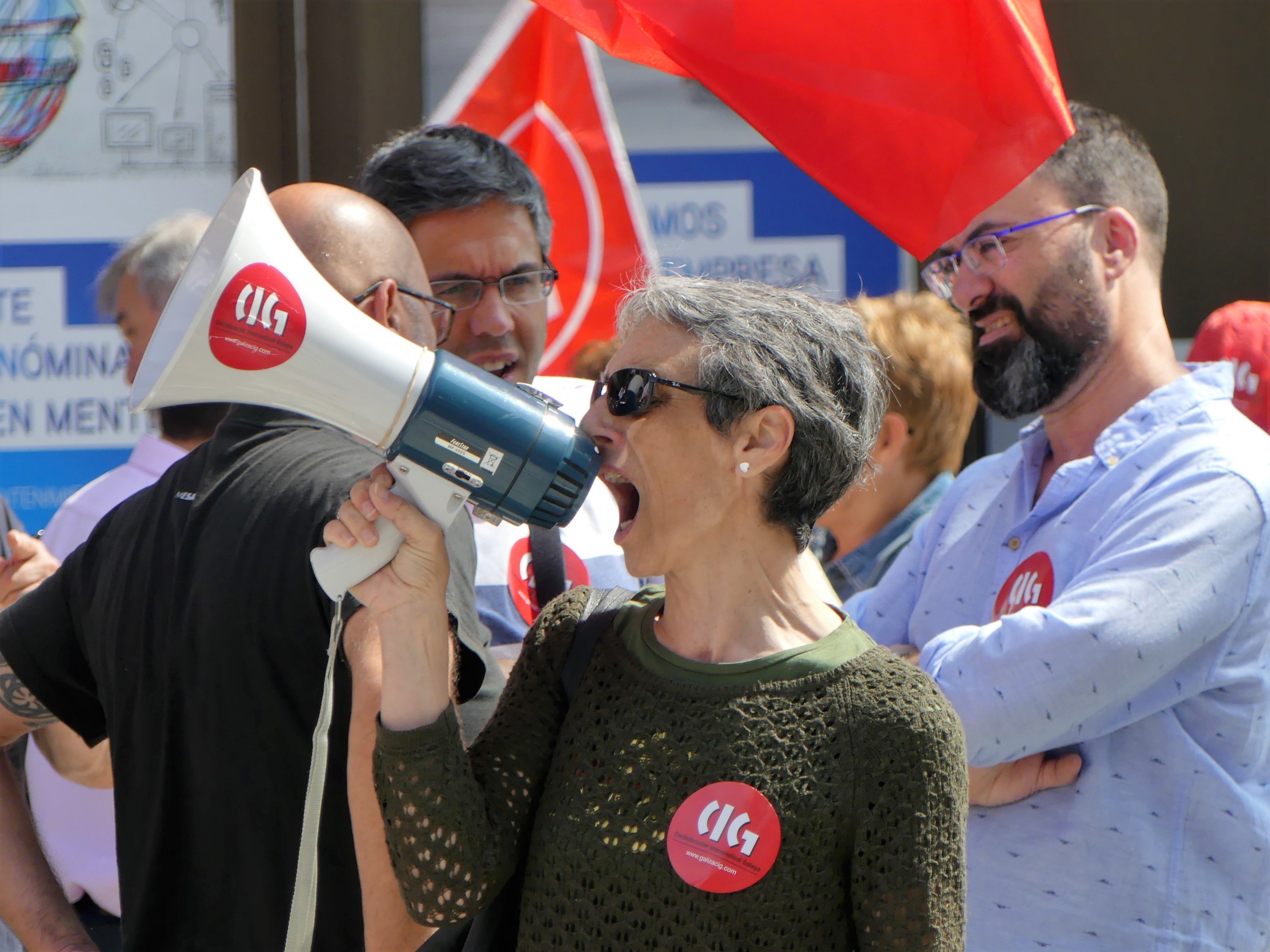 Durante a protesta, que tivo lugar de 11:30 a 12:30 horas, berráronse consignas como “Non á venda de Banco Caixa Geral”, “Emprego si, EREs non” e “Figueroa, trampón, pareces un Borbón” [esta última en referencia ao conselleiro delegado da entidade].