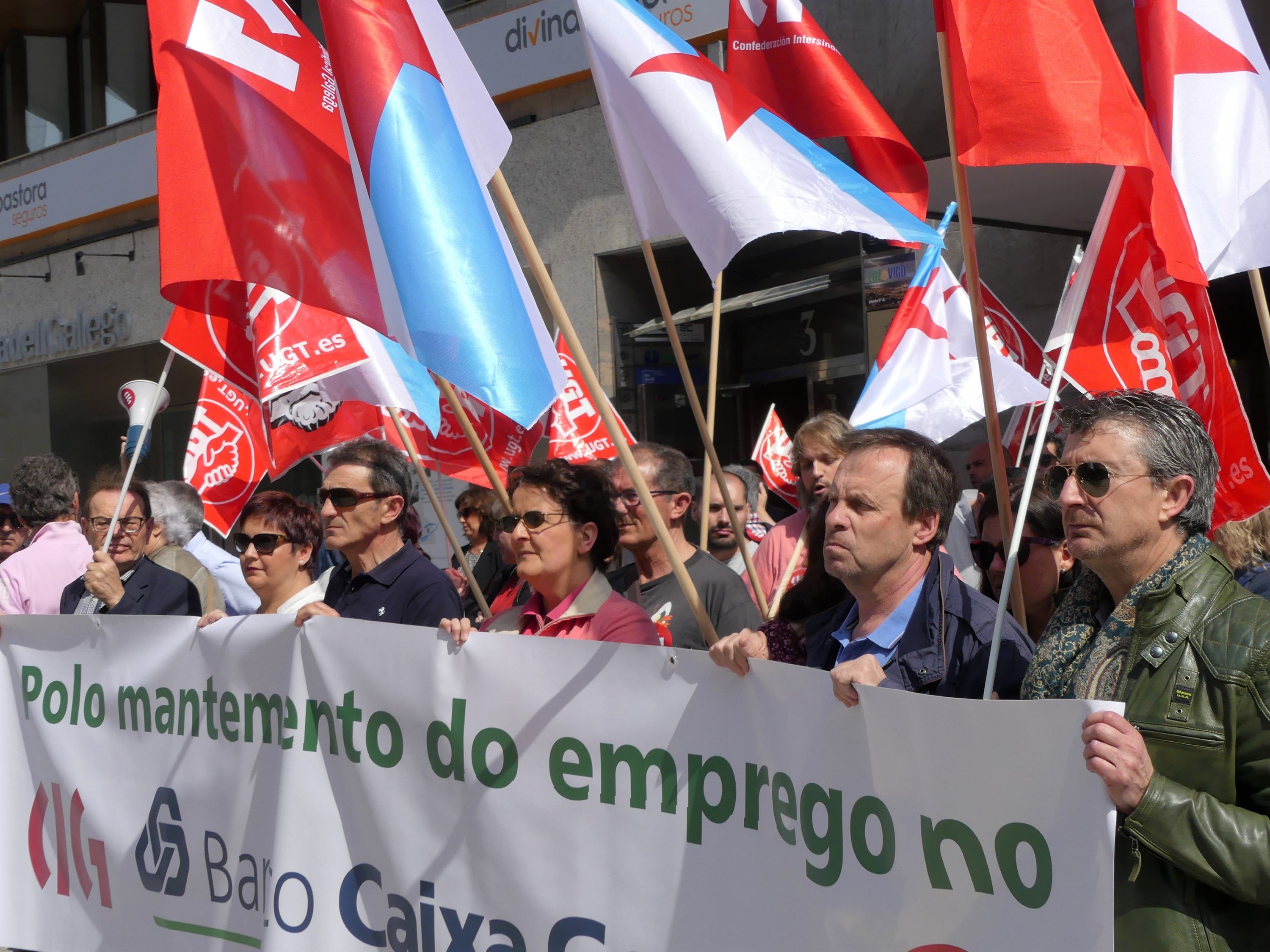 Ao remate da mobilización, convocada pola CIG e a UGT, deuse lectura a un manifesto conxunto no que se denuncia a opacidade da dirección en todo o que ten que ver coa venda do banco e se reclama transparencia, ao tempo que se esixe o mantemento de todos os postos de traballo.