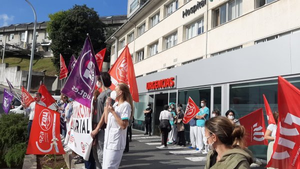A emerxencia sanitaria deixou en evidencia a precariedade laboral, mais tamén a falta de recursos humanos e técnicos "e a mala xestión da dirección do hospital, que antepón, en momentos moi críticos, os seus beneficios empresariais á saúde dos/as seus traballadores/as".